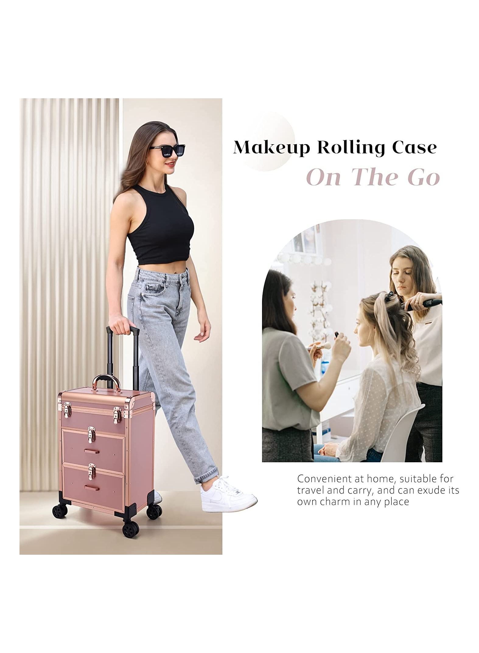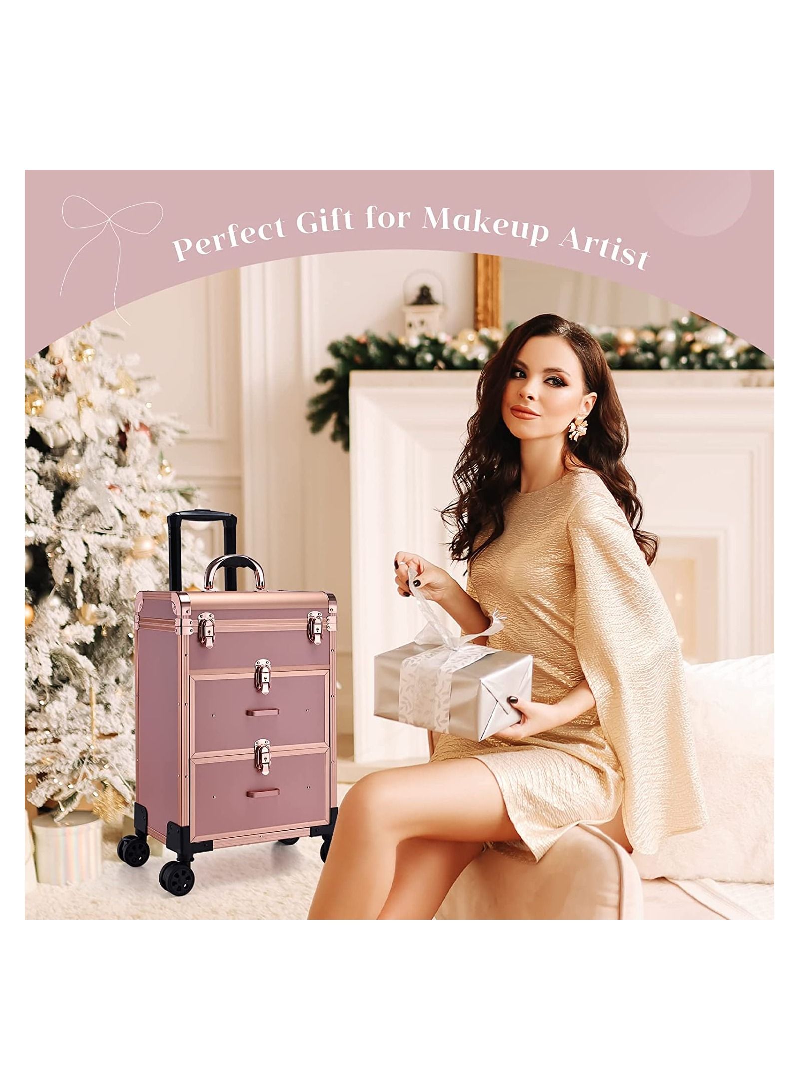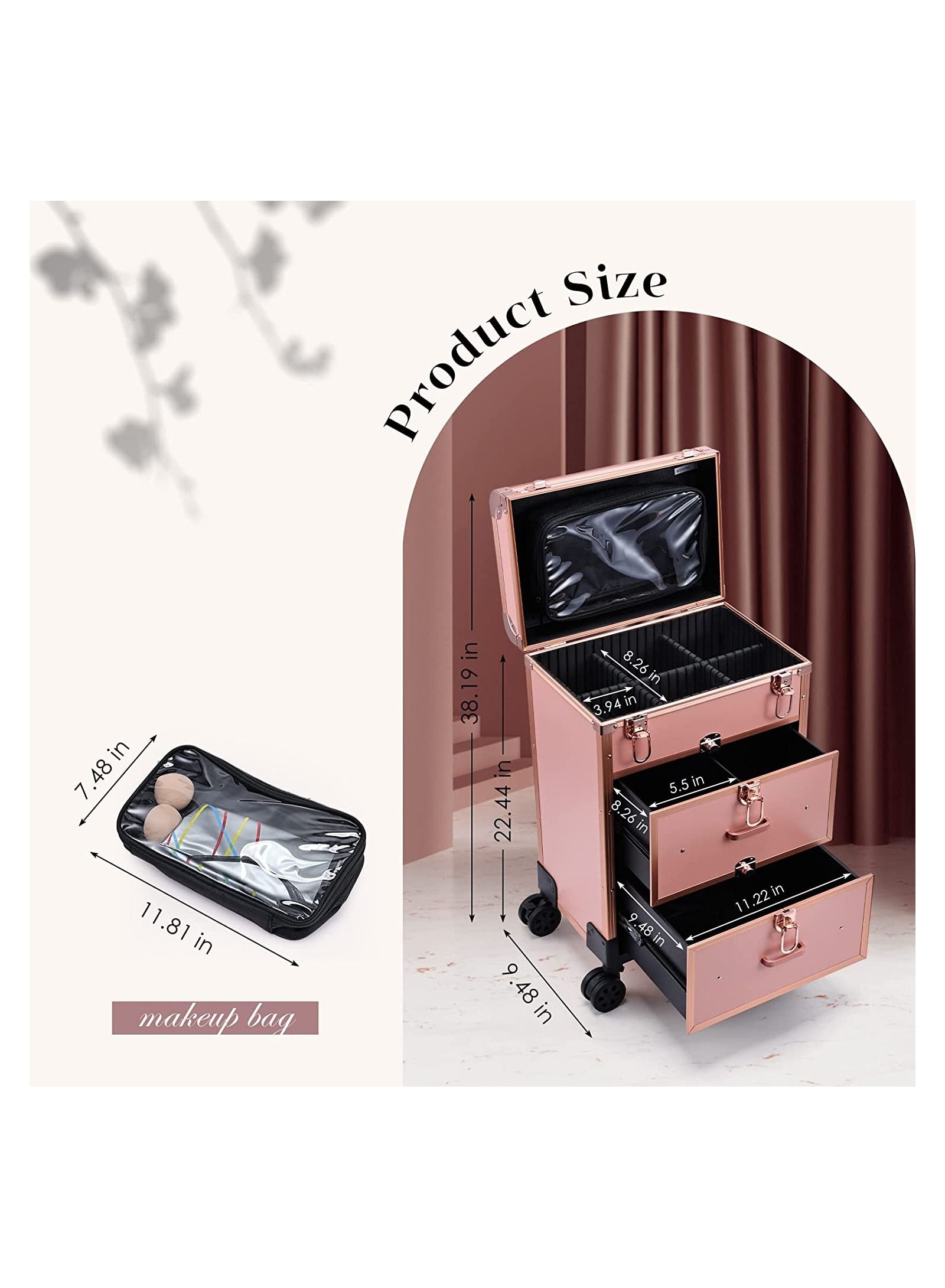 Professional Rolling Makeup Train Case with Drawers, Large Cosmetic Trolley with Locks, Cosmetics Storage Organizer Make up Case for Travel Makeup