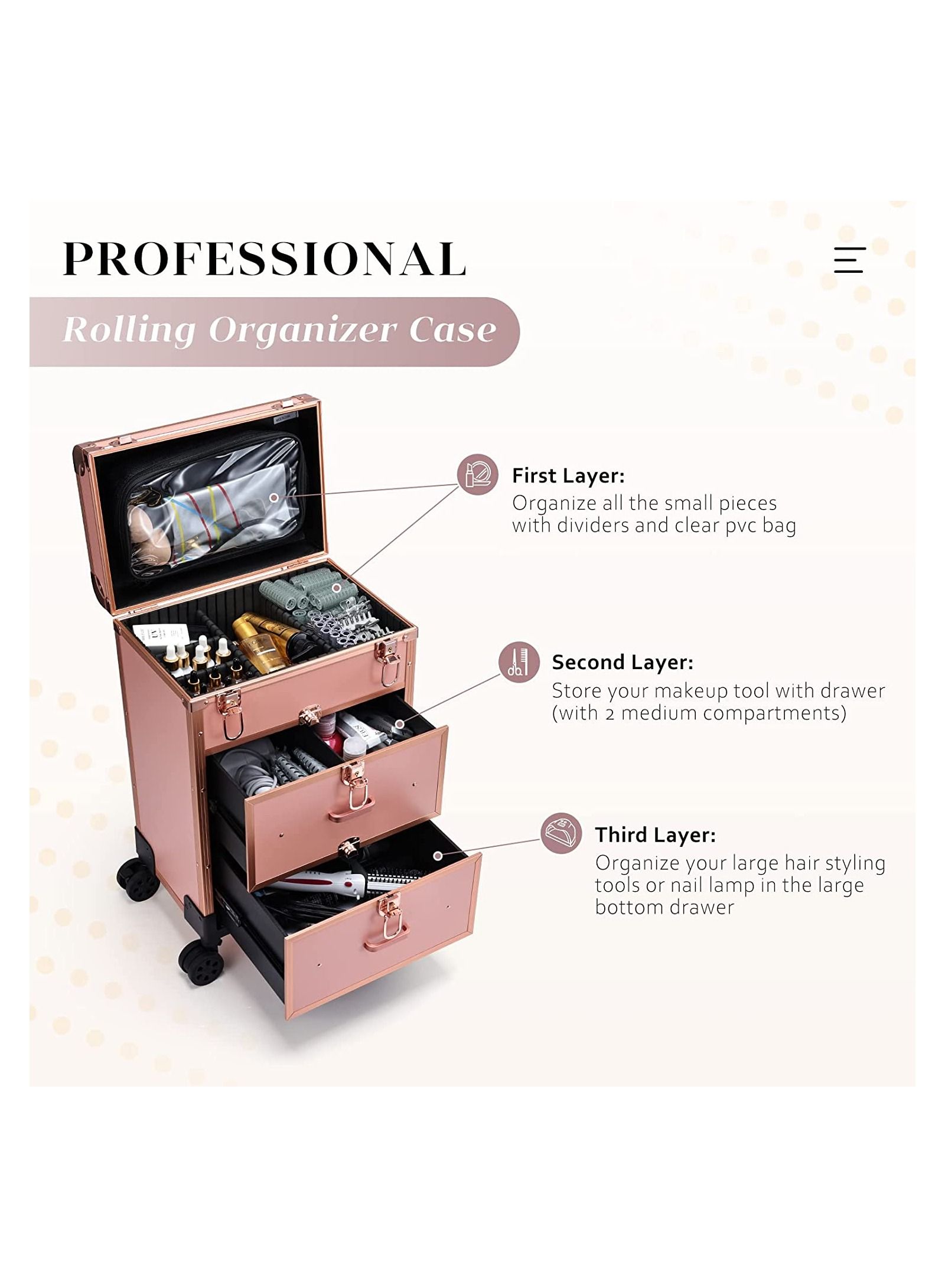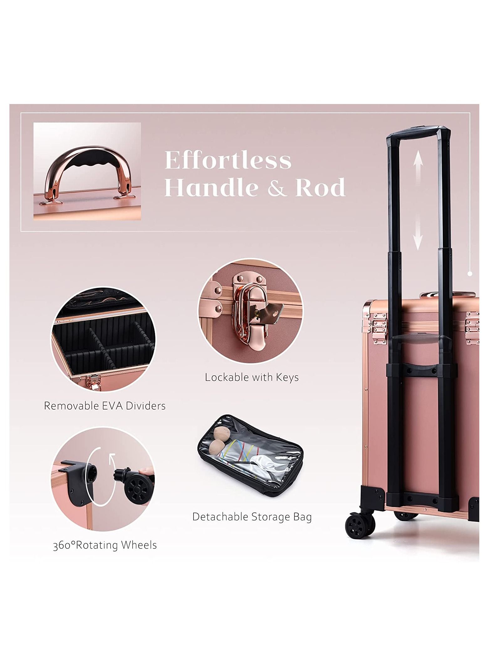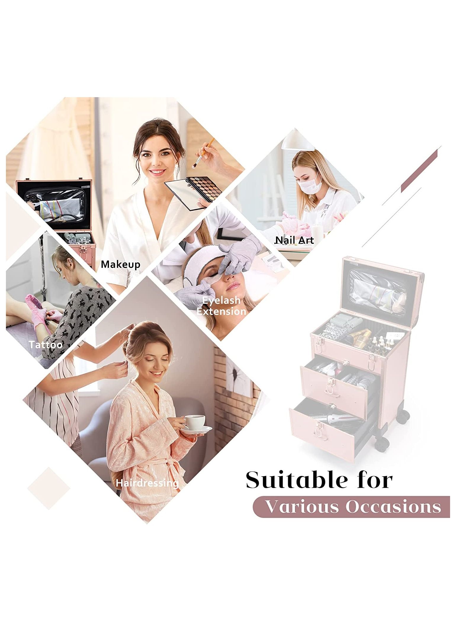 Professional Rolling Makeup Train Case with Drawers, Large Cosmetic Trolley with Locks, Cosmetics Storage Organizer Make up Case for Travel Makeup