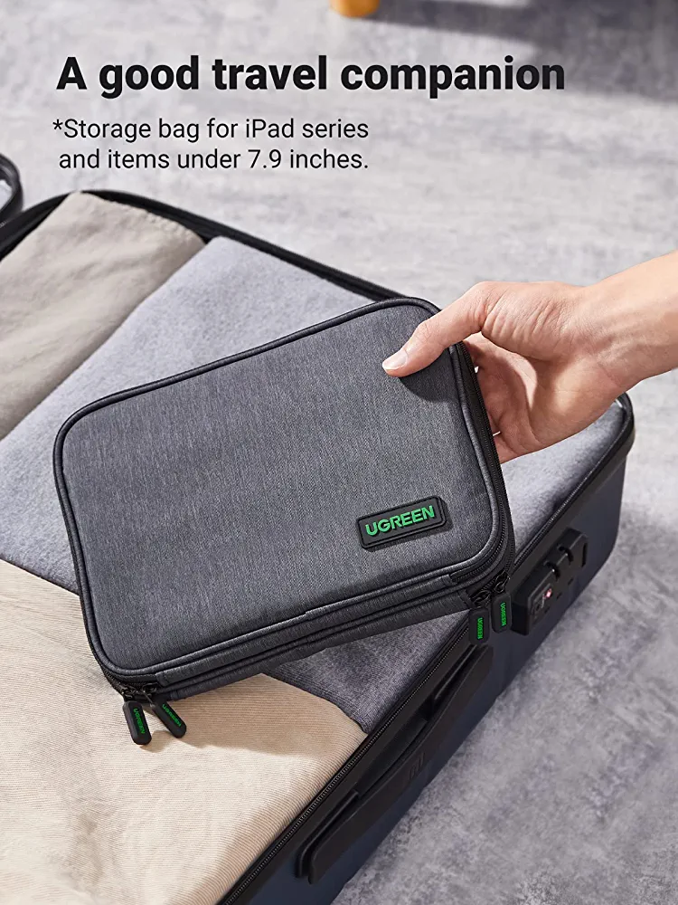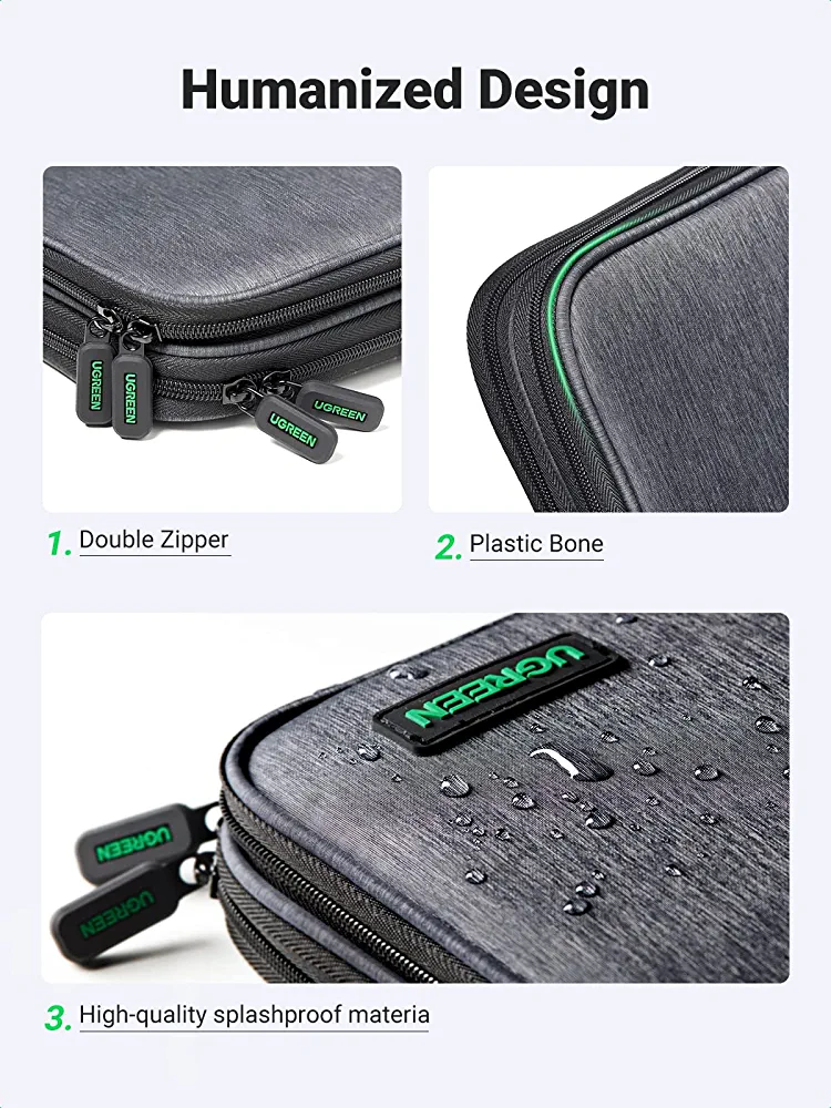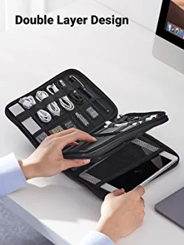 The UGREEN Travel Gadget Organizer bag is perfect for tech enthusiasts who want to keep their gadgets organized and easily accessible. It can store various gadgets of different sizes, including cell phones, charger adapters, cables, earphones, SD memory cards, power banks, and portable external hard drives. The bag features mesh pockets and elastic bands that allow for divisional storage and easy access to your gadgets and accessories. Its double-layer design ensures that your gadgets are secured separately.