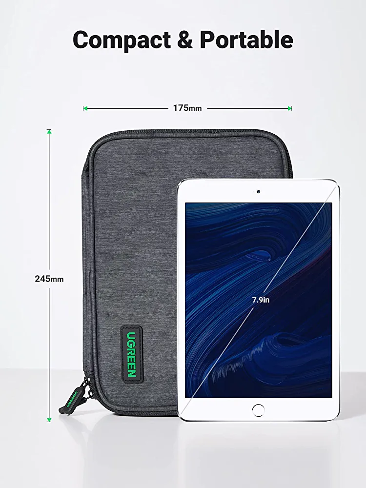 The bag is made of premium rubber elastic loop, linen and polyester fibers, and mesh pockets that provide multi-protection to your gadgets from falling and scratches. It is a portable travel companion with a size of 245 x 175 x 50mm and a weight of 0.19kg, making it easy to slide into your backpack, shoulder bag, or suitcase. It is ideal for on-the-go use.