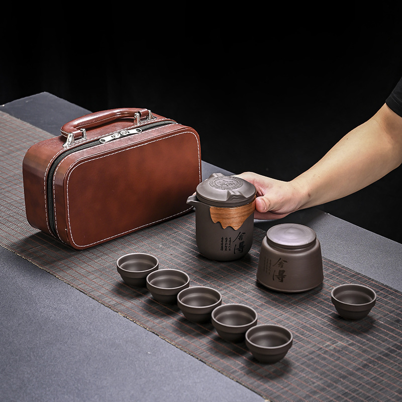 | nameOriginal | Travel Kung Fu Purple Sand Tea Set suit Household Outdoor Portable Storage Simple Express Cup One Pot Six Cups with Tea Pot |