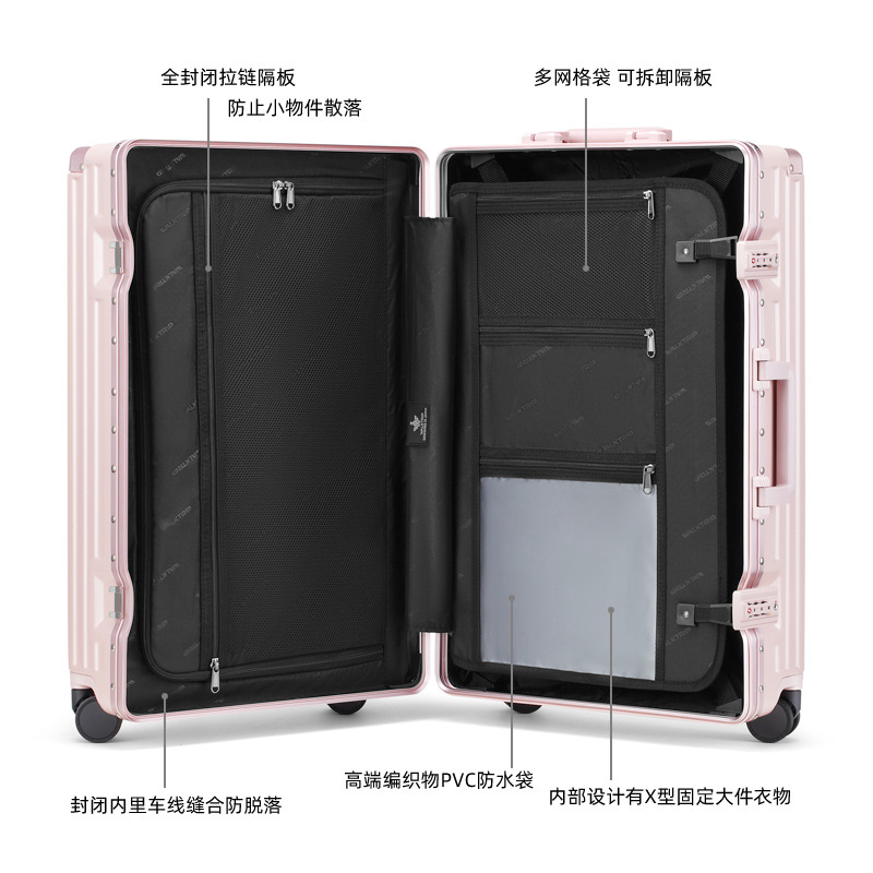 | nameOriginal | Travel Lotus Root Pink Aluminum Frame Luggage Case Women's 26-inch Trolley Case Universal Wheel 2824 Suitcase 20 Boarding Case |