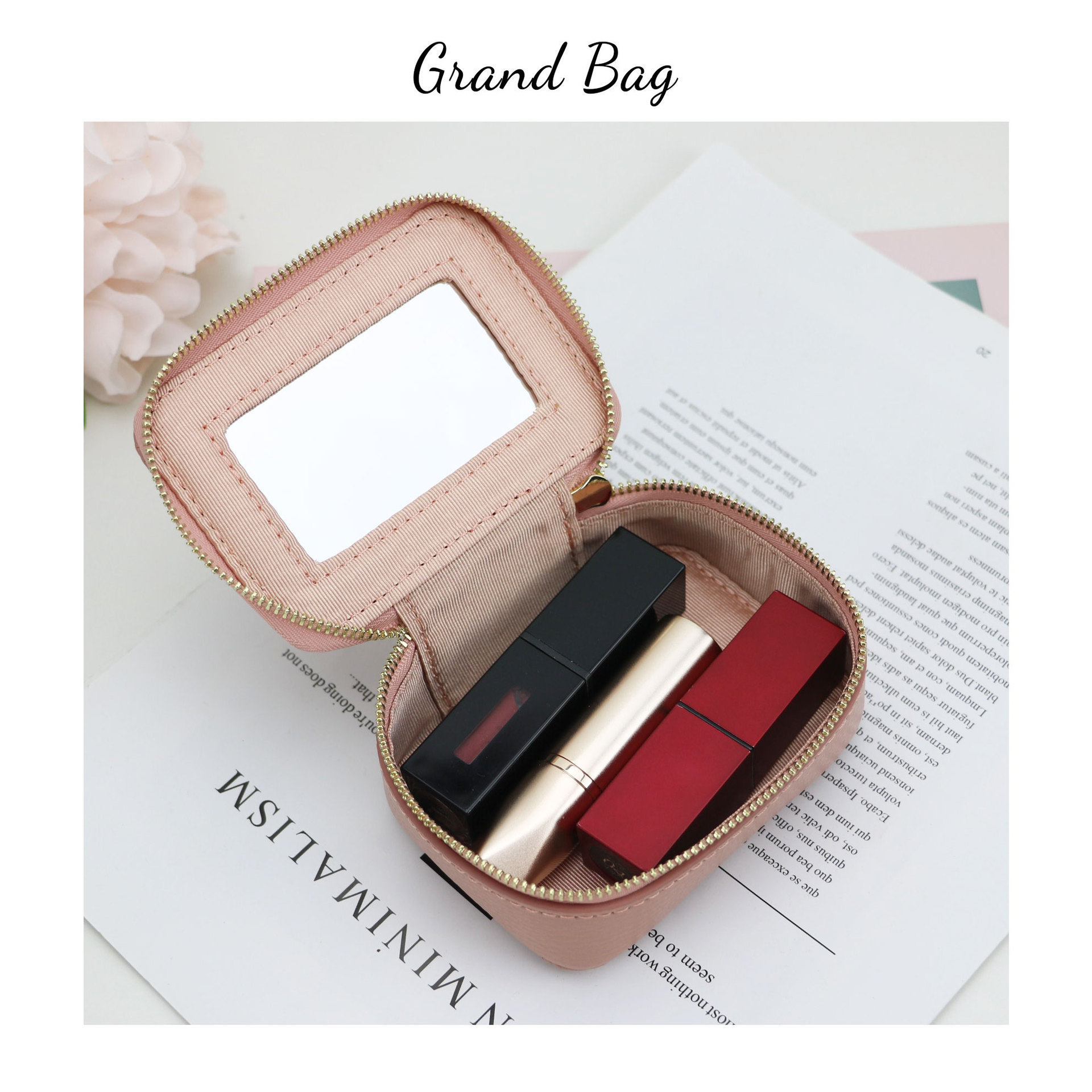 Travel Portable Mini Rhomboid Small Girl’s Lipstick Lipstick Box Real Belt Mirror Jewelry Cosmetic Storage Bag