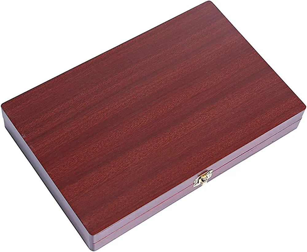 Introducing the Wood Backgammon Board Game Set, perfect for a variety of occasions such as travel, family entertainment, game nights, parties, and holiday gatherings. The high-quality felt playing field ensures a quiet atmosphere when rolling the dice, while the portable and foldable design makes it easy to carry and store. Crafted with superb craftsmanship, this board game set boasts a sturdy frame, excellent durability, and sturdiness. The sturdy suitcase comes with a metal latch and high-quality artificial leather handle, making it easy to transport. The smooth surface allows for easy movement of chips during gameplay. This set makes for a great gift idea for men, women, fathers, mothers, grandparents, and children. Additionally, board games offer numerous benefits such as early learning opportunities for kids, creating happiness, strengthening relationships, enhancing creativity and self-confidence, and teaching goal-setting and patience. Don’t miss out on the fun with this Backgammon set, which includes 2 dice and internal storage, and measures 28 x 17.5 x 4 cm.