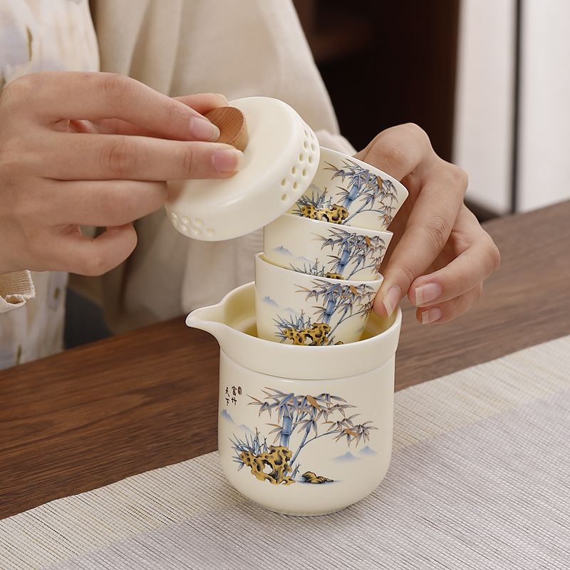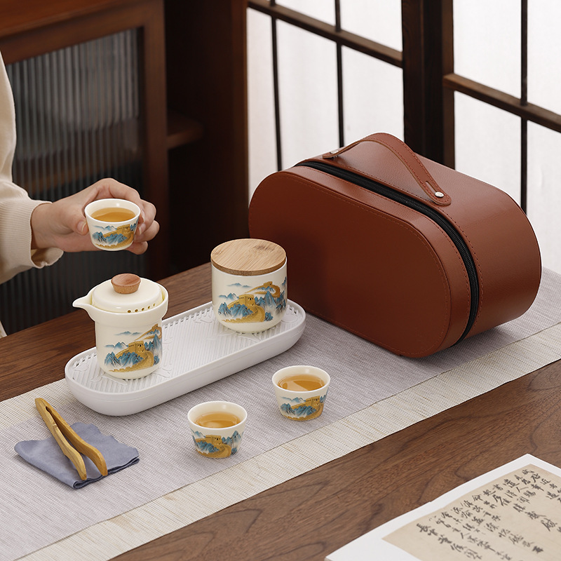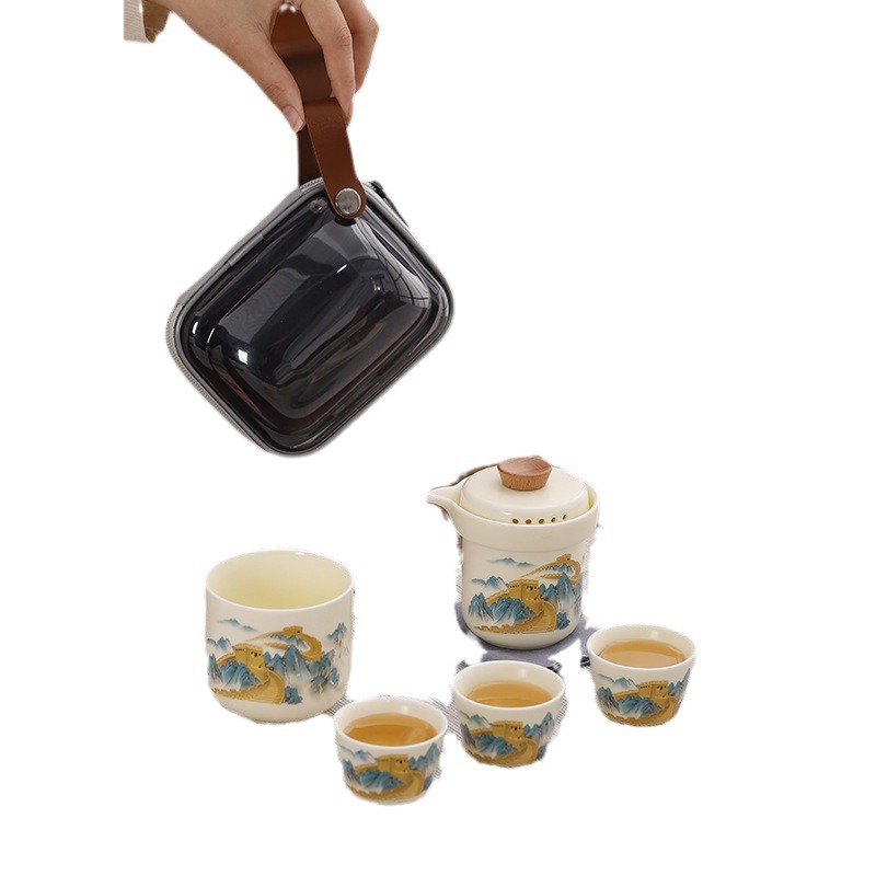 | nameOriginal | Travel Tea Set Ceramic Tea Set suit Portable Tea Set Express Cup One Pot Three Cups Car Accompanying Gift LOGO |