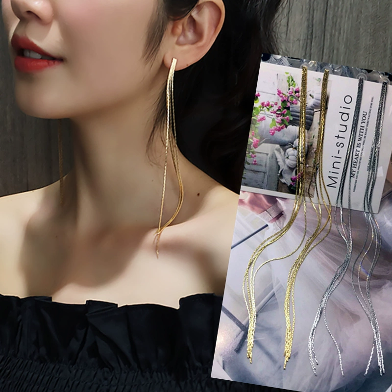 | nameOriginal | Tremella needle temperament extra long gold chain tassel earrings women's earrings thin tassel Korean long simple earrings |