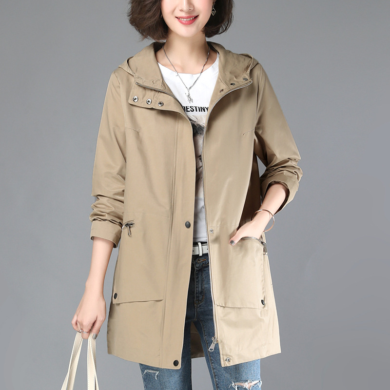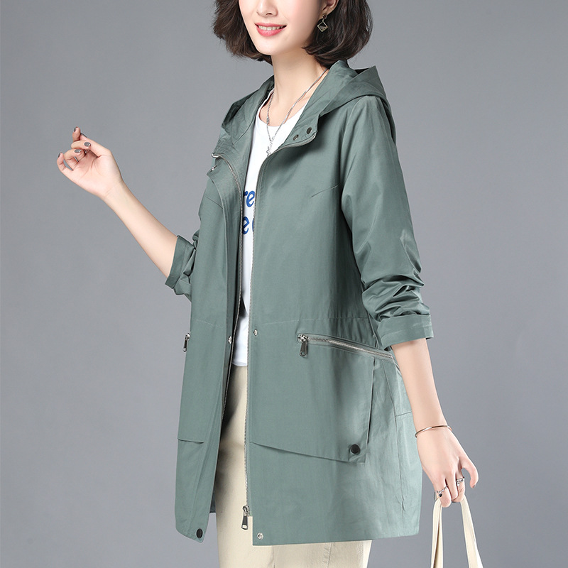 Trench coat for women mid-length Spring and Autumn New hooded loose Western style casual solid color elegant coat for middle-aged moms autumn
