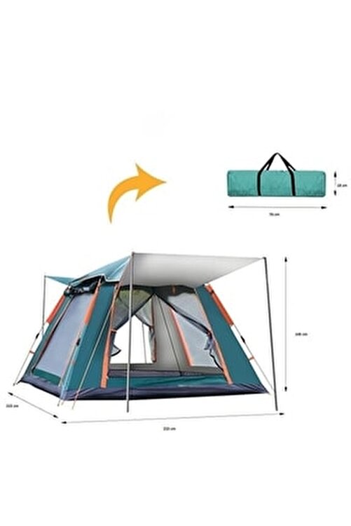 Width: 215 cm Height: 215 cm Height: 145 cm Carrying case is available. BagSize:13x76x15cm Product Weight:3200 gr Considering the product dimensions, you can predit the number of people who will use it. The product is automaticinstallation. Installation of the product has new umbrella type drop-down installation as it is very easy and simple to assemble. Open the automatic installation mechanism carefully and without difficulty. Opens in the middle, there is a zippered window, a fly screen. Can pass water in extreme rainy weather. It does not take water in mild degree moisturizing, such as the one we encountered in the morning. Do not keep the tent wet. The choice of colors is not available. Product colors are shipped according to stock status.