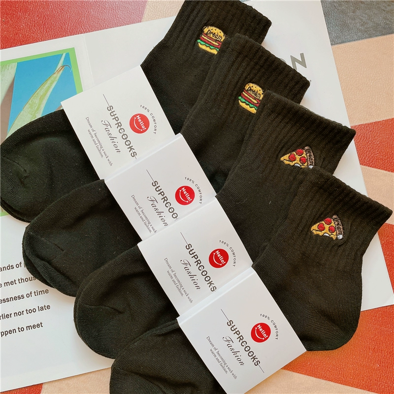 Trendy 4 pairs of summer anti-odor embroidery versatile men’s short socks