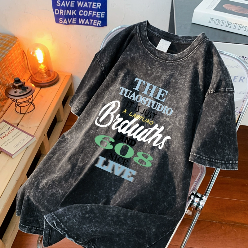 | nameOriginal | Trendy American high street washed and distressed short-sleeved tops |