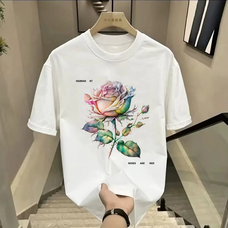 | nameOriginal | Trendy American large size half sleeve round neck rose print |