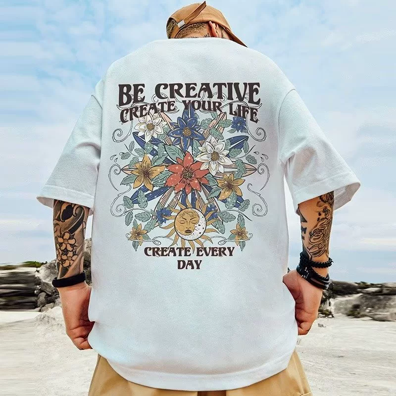 American short-sleeved T-shirt large-size men’s summer fashion brand ins fat man plus fat plus loose cotton half-sleeved top trendy