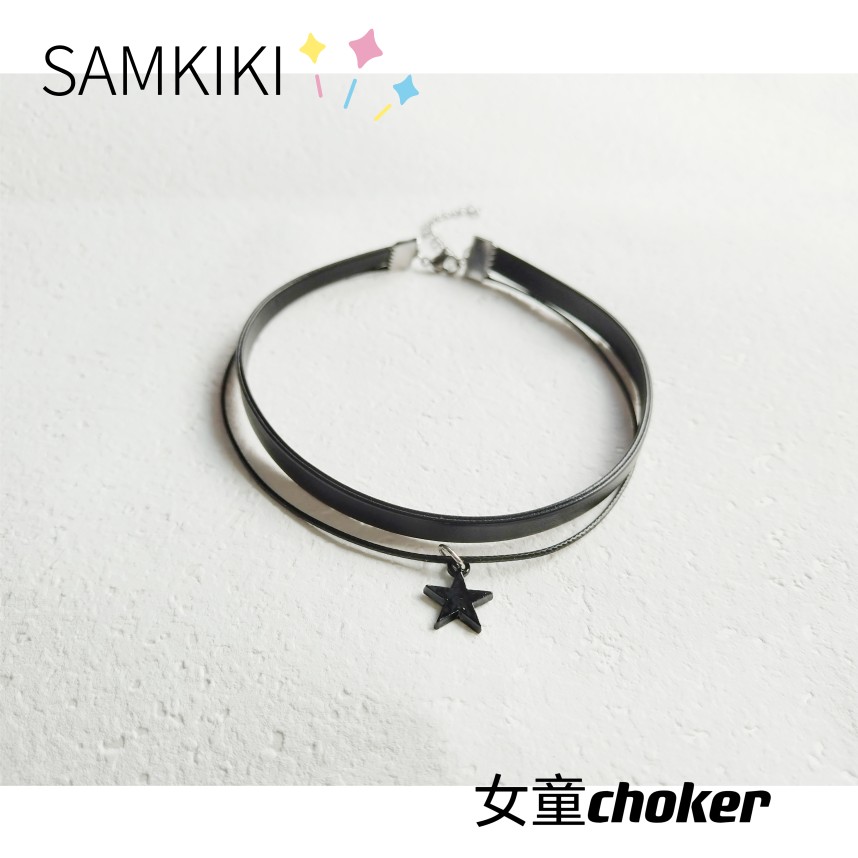 Trendy and cool baby girl double layer black star short necklace leather cord