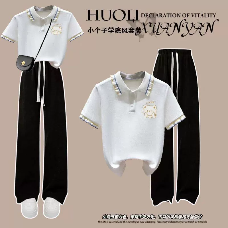 Trendy cool girl summer ice silk wide-leg two-piece pants
