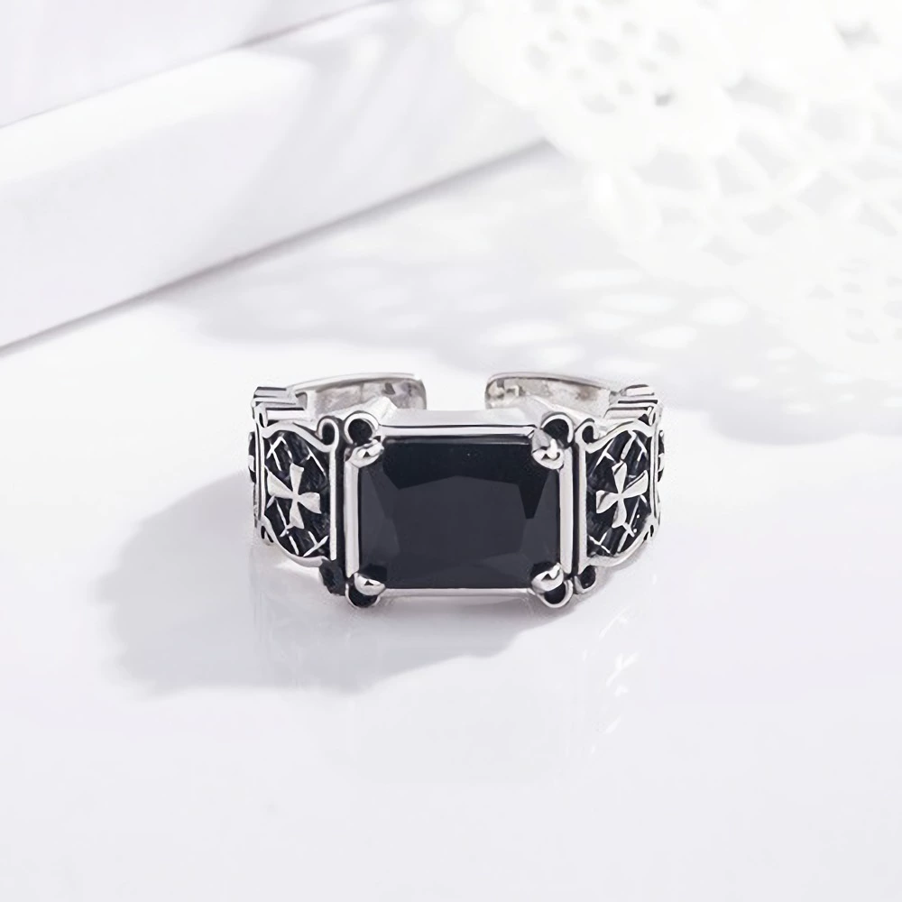 | nameOriginal | Trendy and fashionable black agate retro Thai silver ring men's creative cross ring women's Japanese and Korean version open ring |