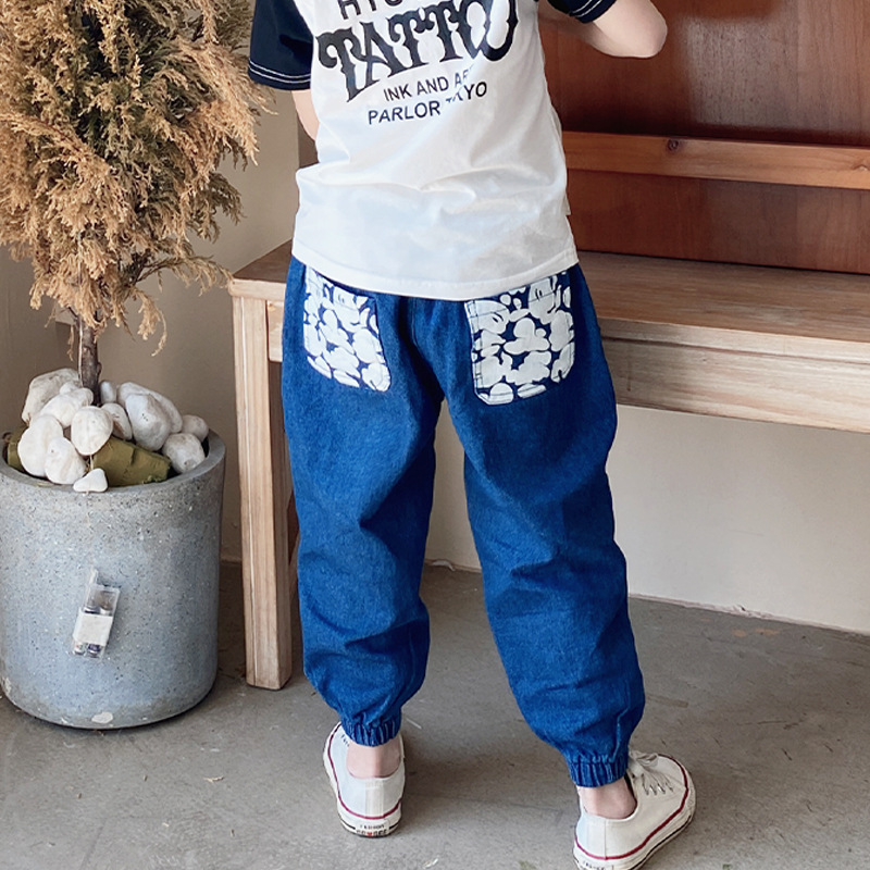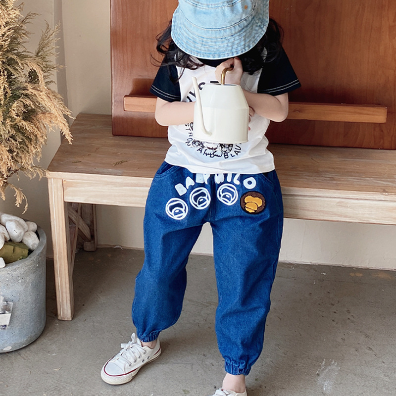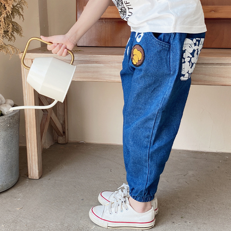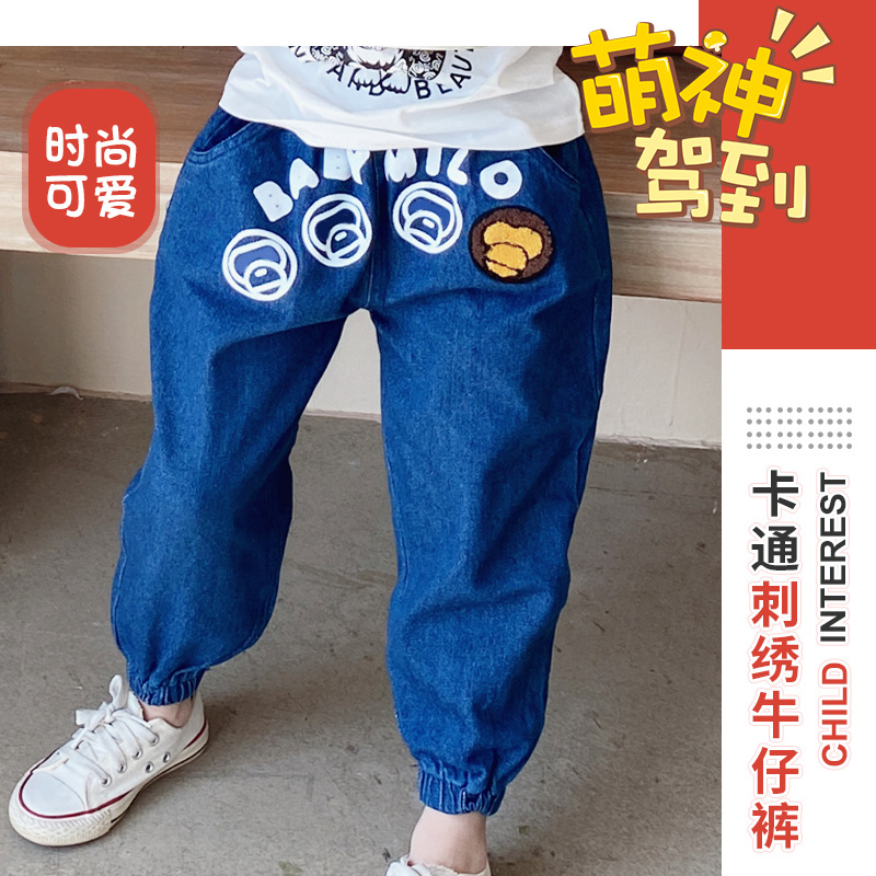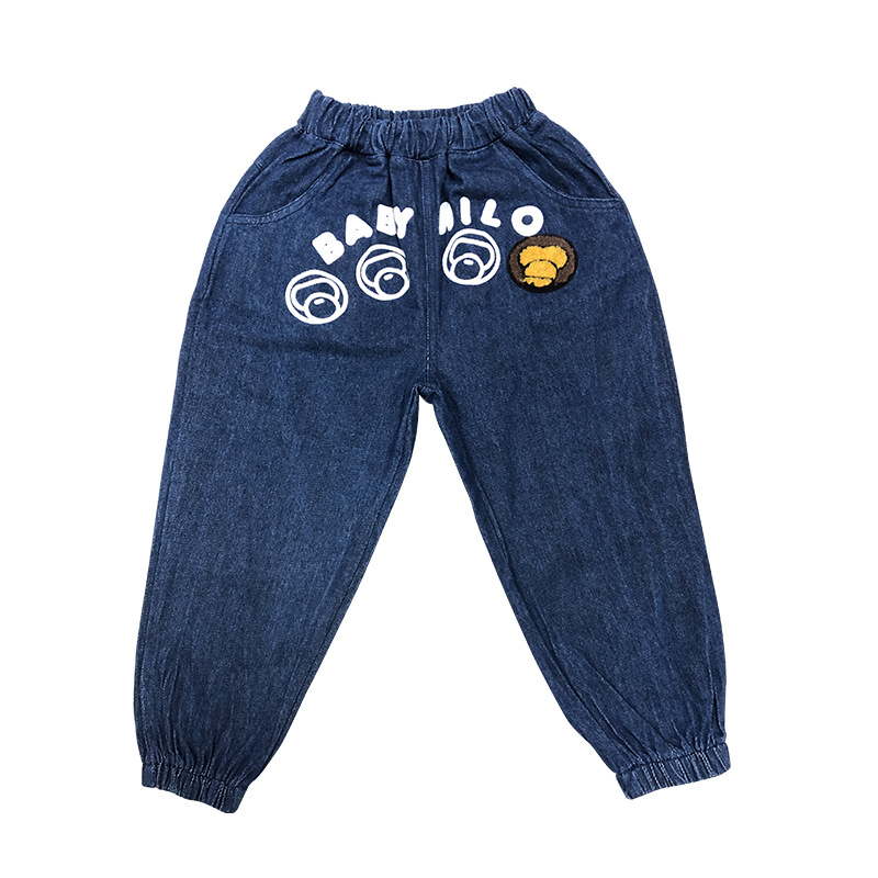 | nameOriginal | Trendy Ankle Pants Children's Korean Letter Round Monkey Blue Jeans Children's Cartoon Casual Pants |