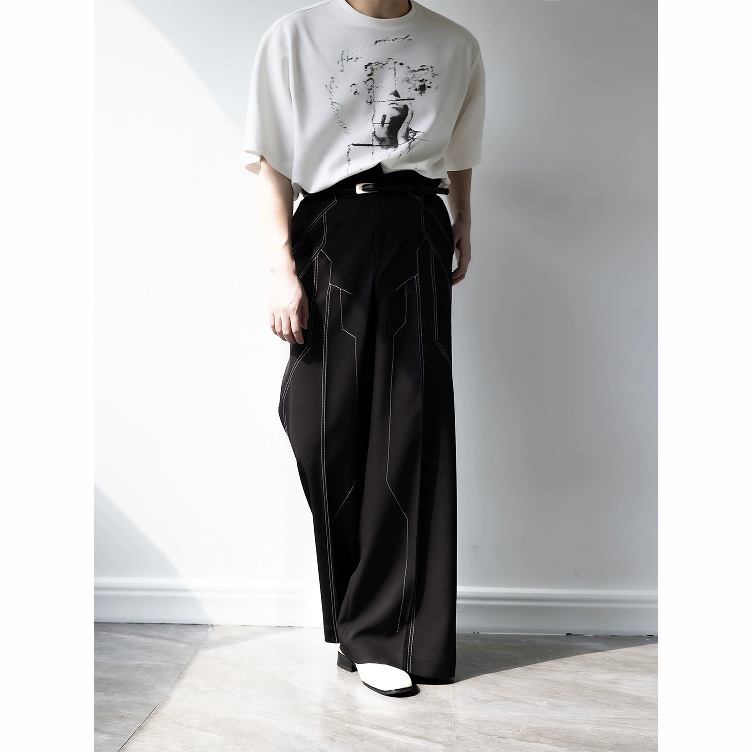 | nameOriginal | Trendy belt with topstitching and drapey casual trousers |