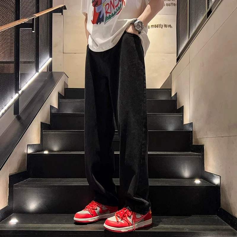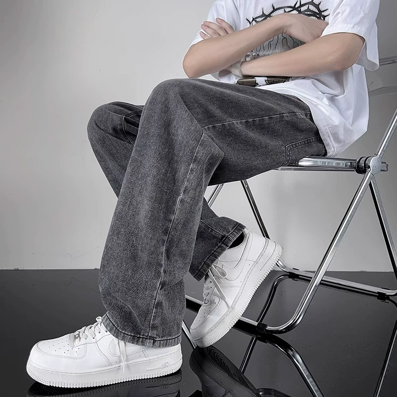 Trendy black and gray summer Hong Kong style cec jeans