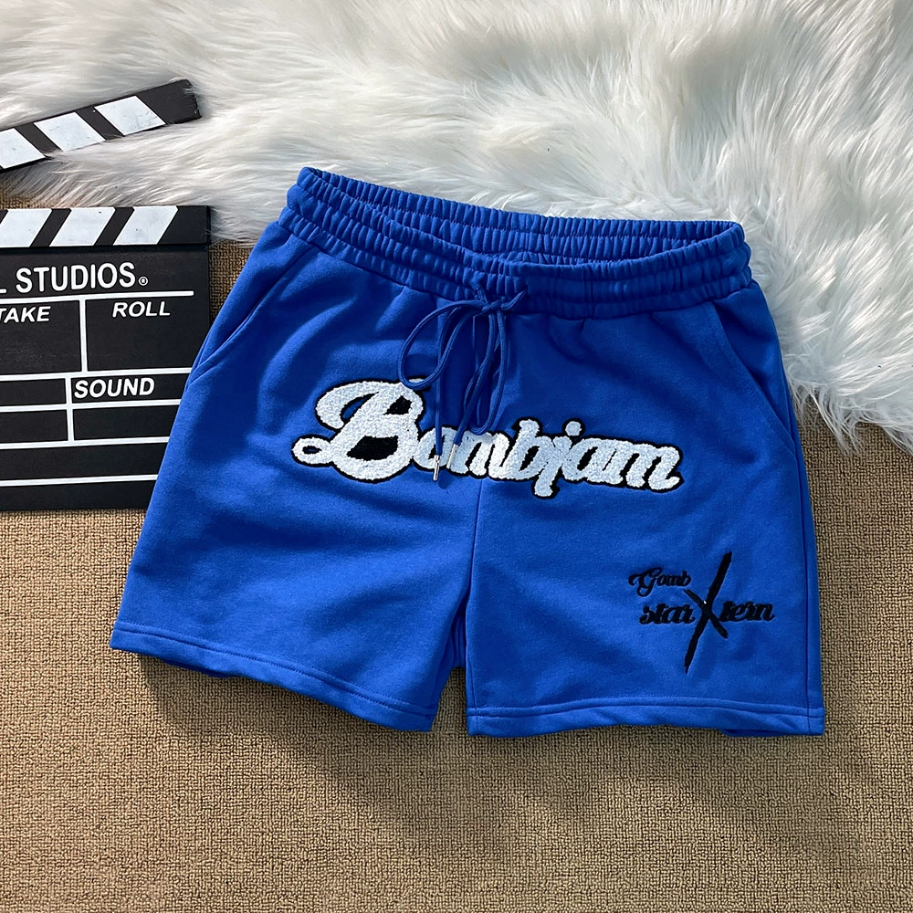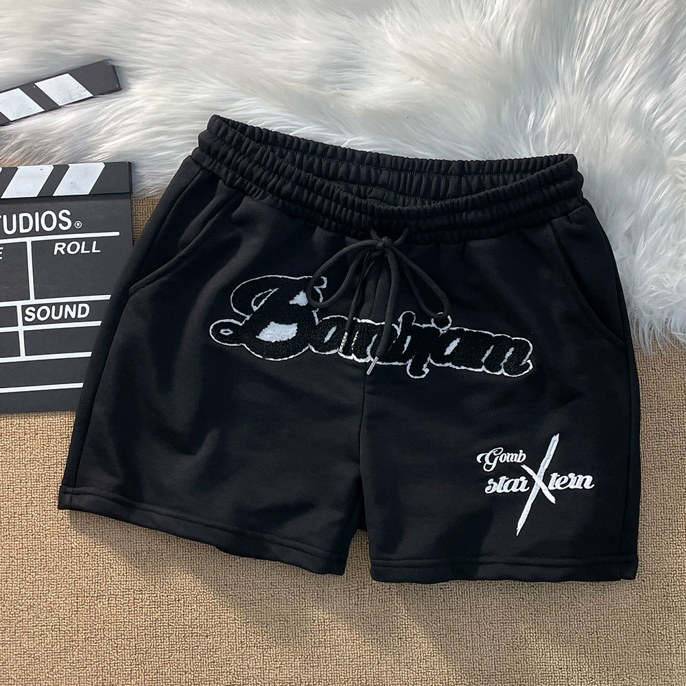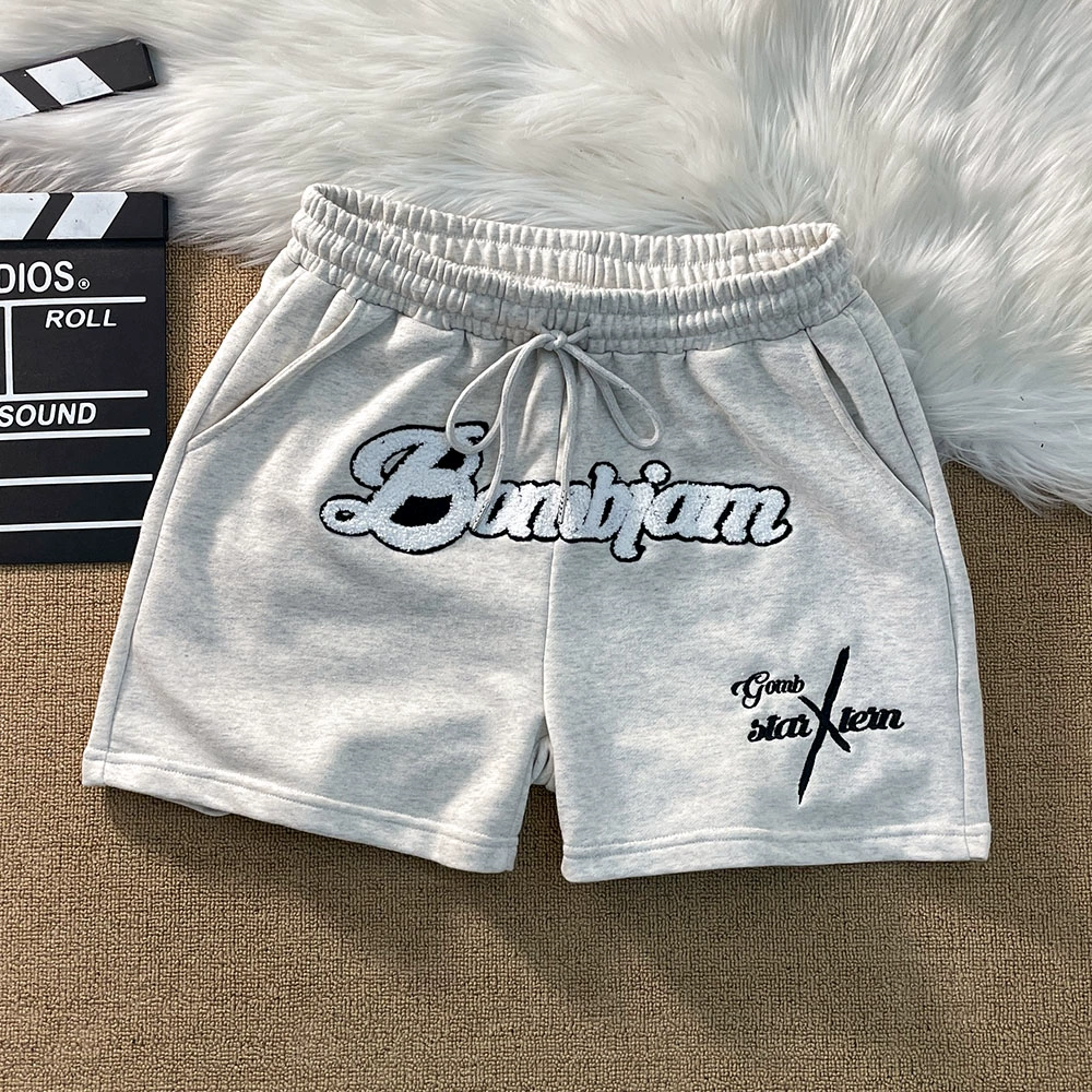 Tide brand 300 grams of wool ring casual quarter pants embroidery