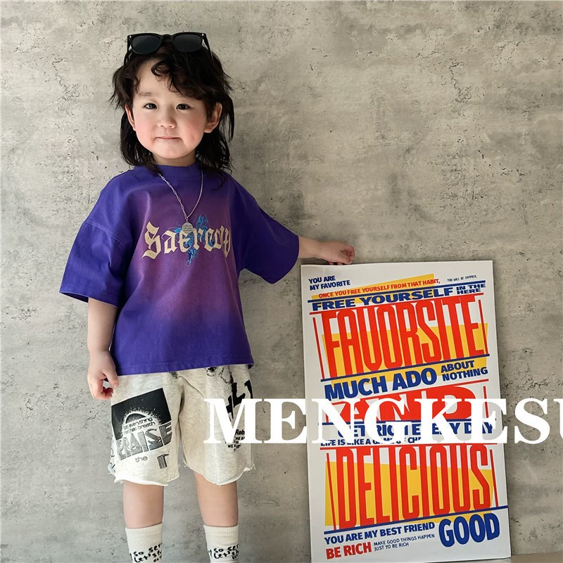 | nameOriginal | Trendy brand boys and girls washed distressed baby Japanese style short sleeves |