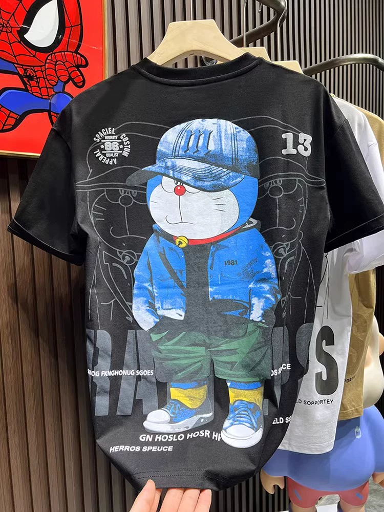 Trendy brand cartoon bottoming shirt, comfortable half-sleeved high-end men's clothing