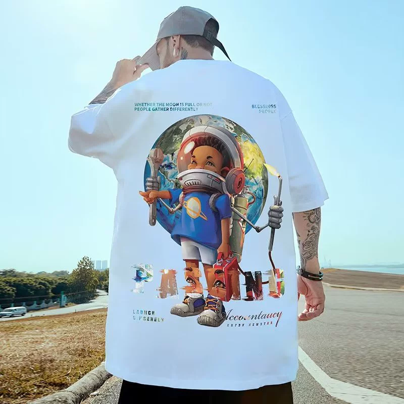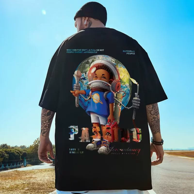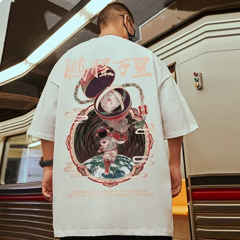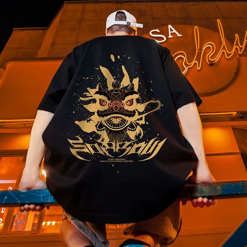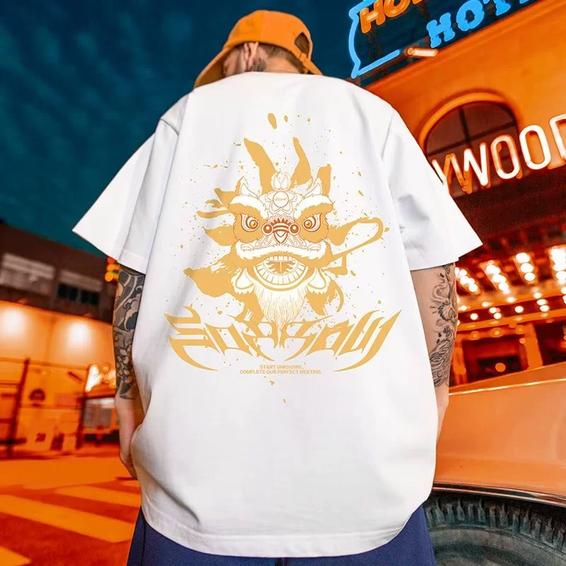 Trendy brand Chinese style lion awakening plus fat large size short-sleeved T-shirt