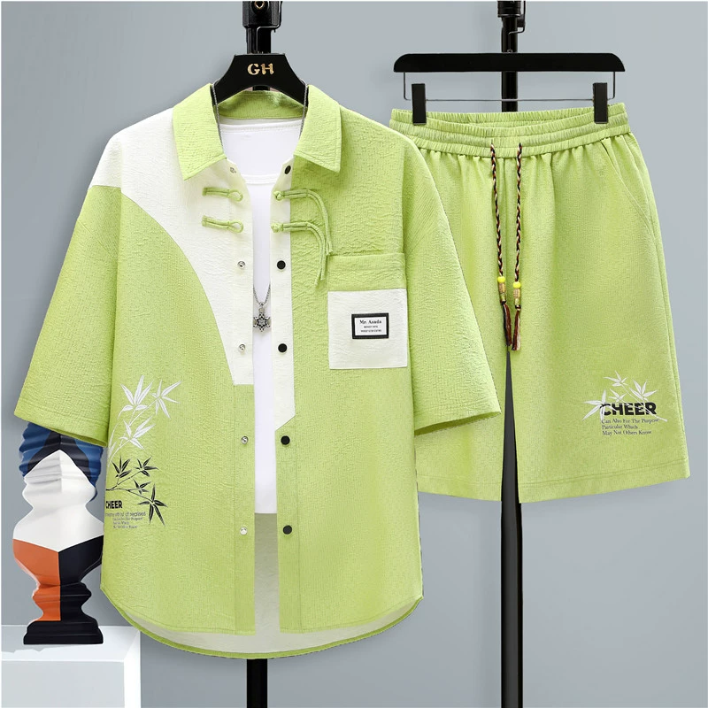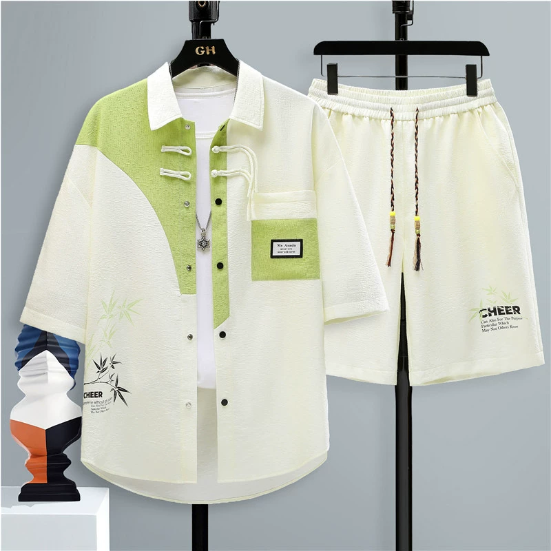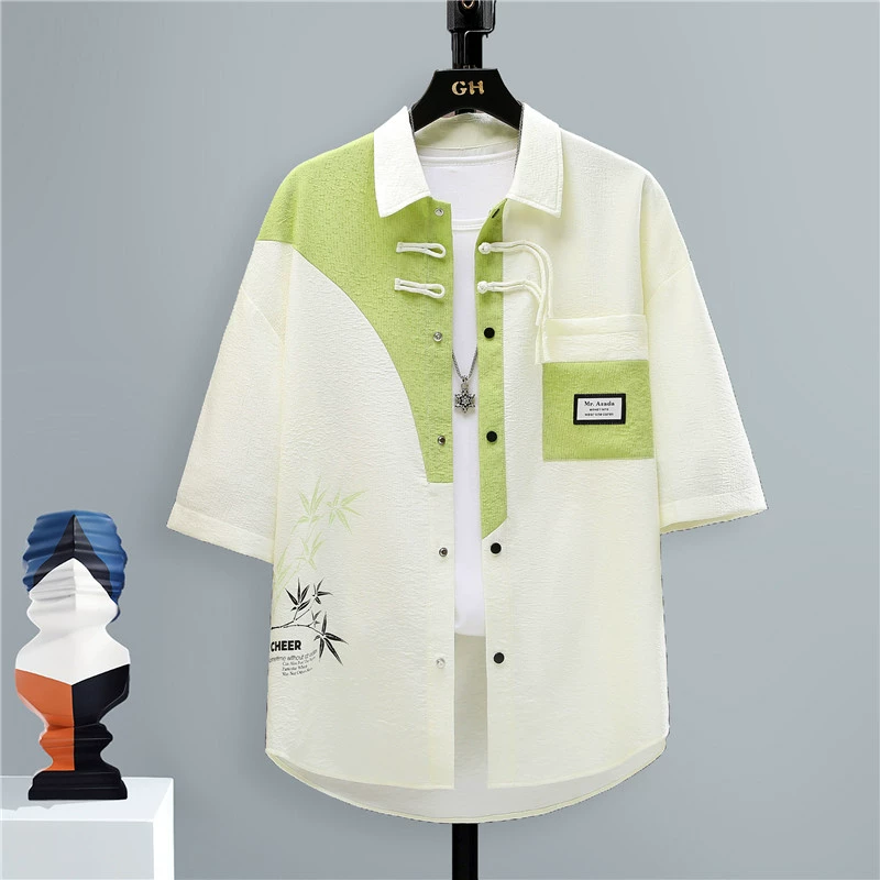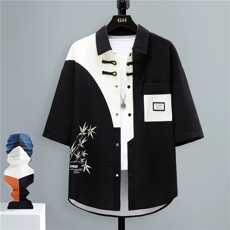 | nameOriginal | Trendy brand Chinese style stitching handsome button-down short-sleeved shirt |