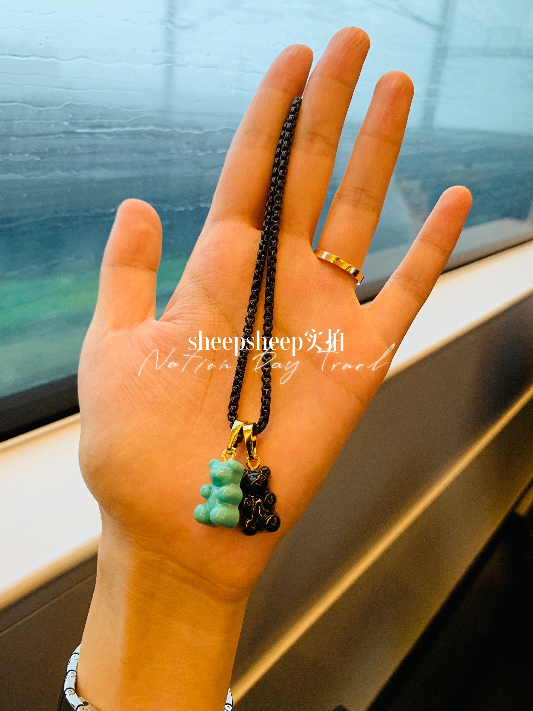| nameOriginal | Trendy brand Crystal versatile Haze colorful gummy bear pendant heart-shaped twist snake bone black couple necklace |