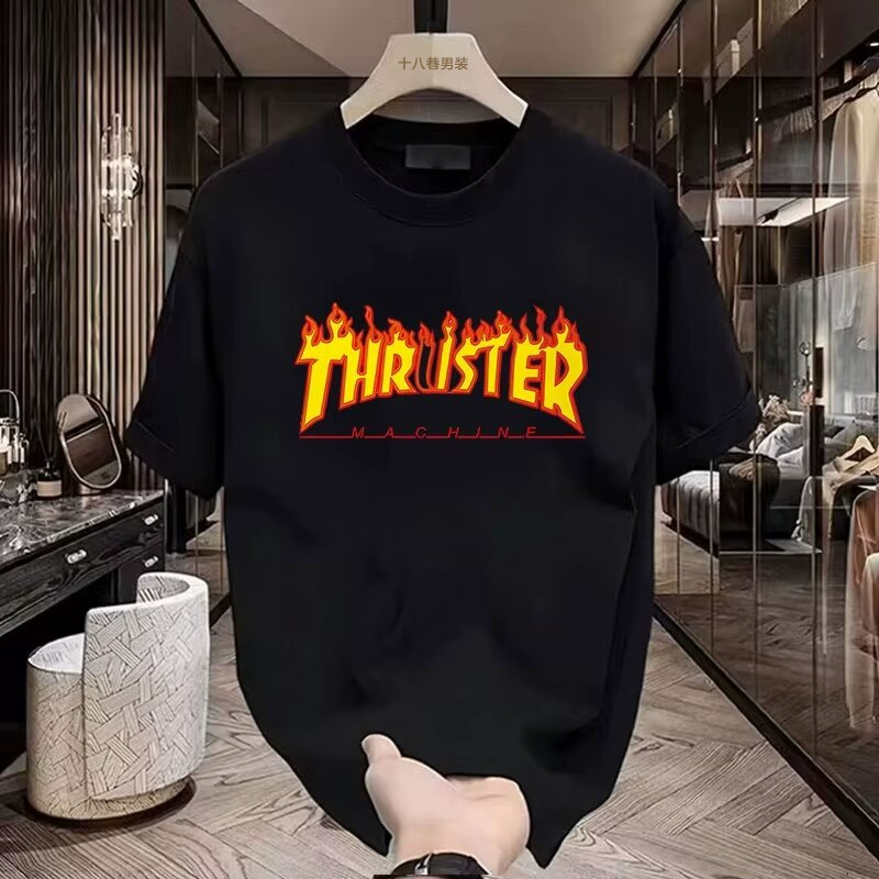 | nameOriginal | Trendy brand flame short-sleeved classic letter print men's and women's pure cotton heavyweight t-shirt loose round neck couple wear half-sleeved ins |