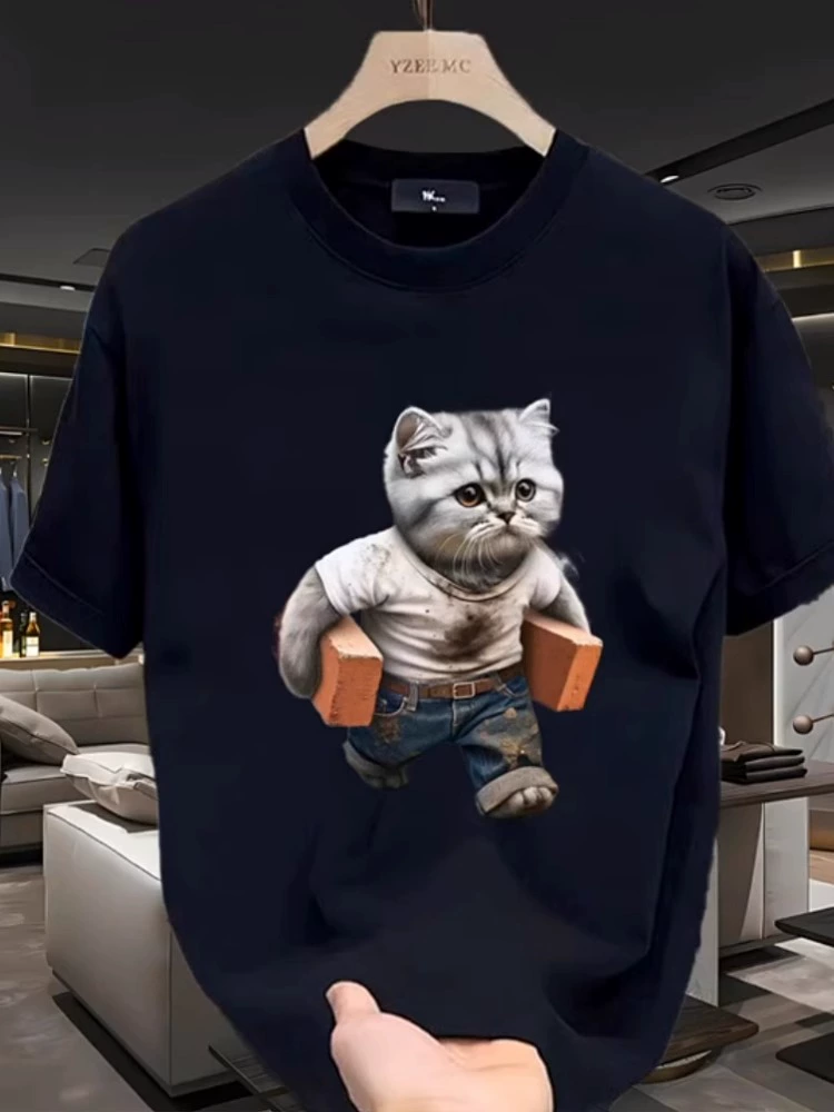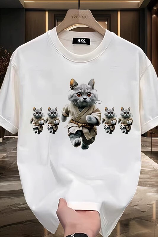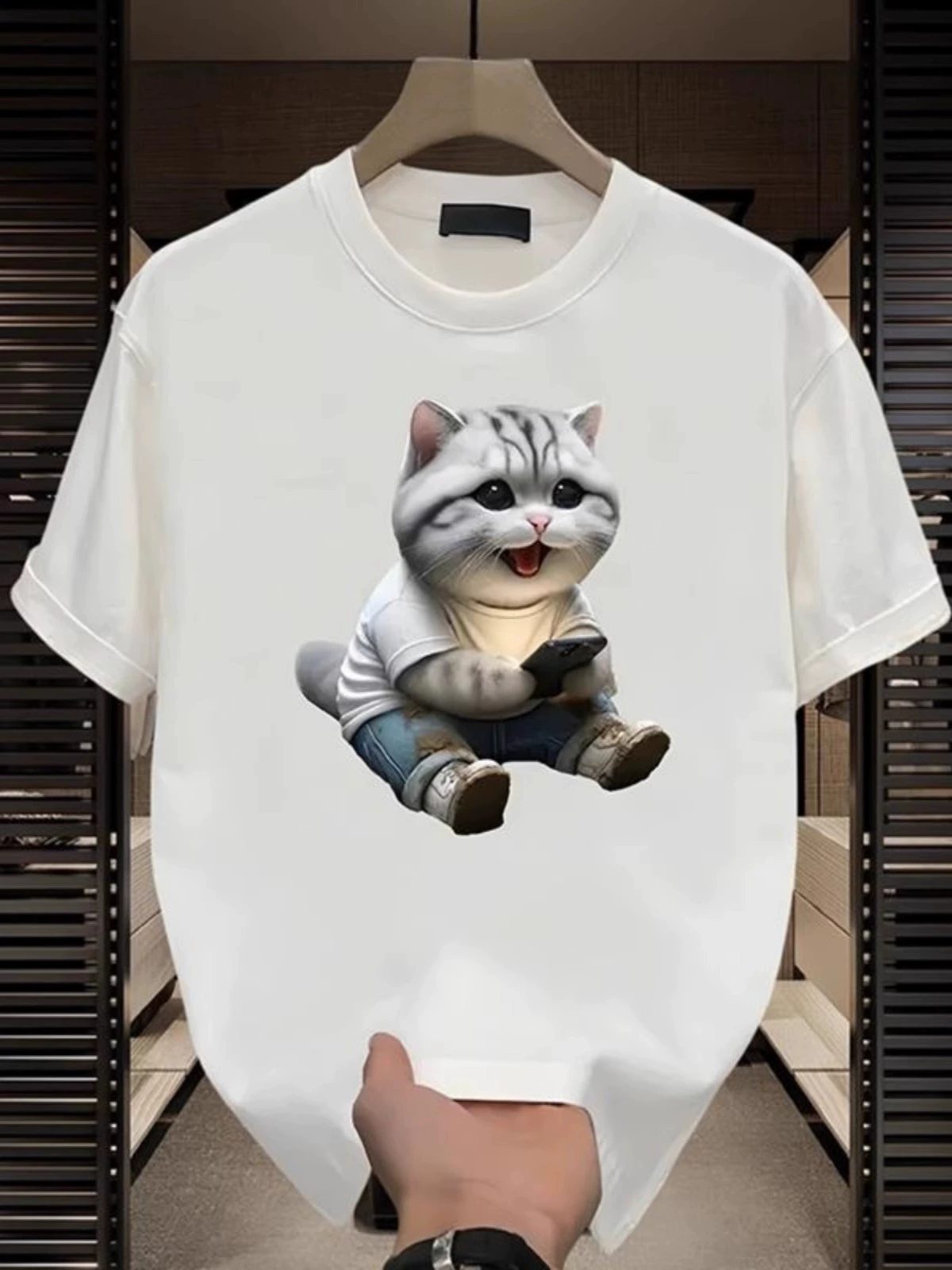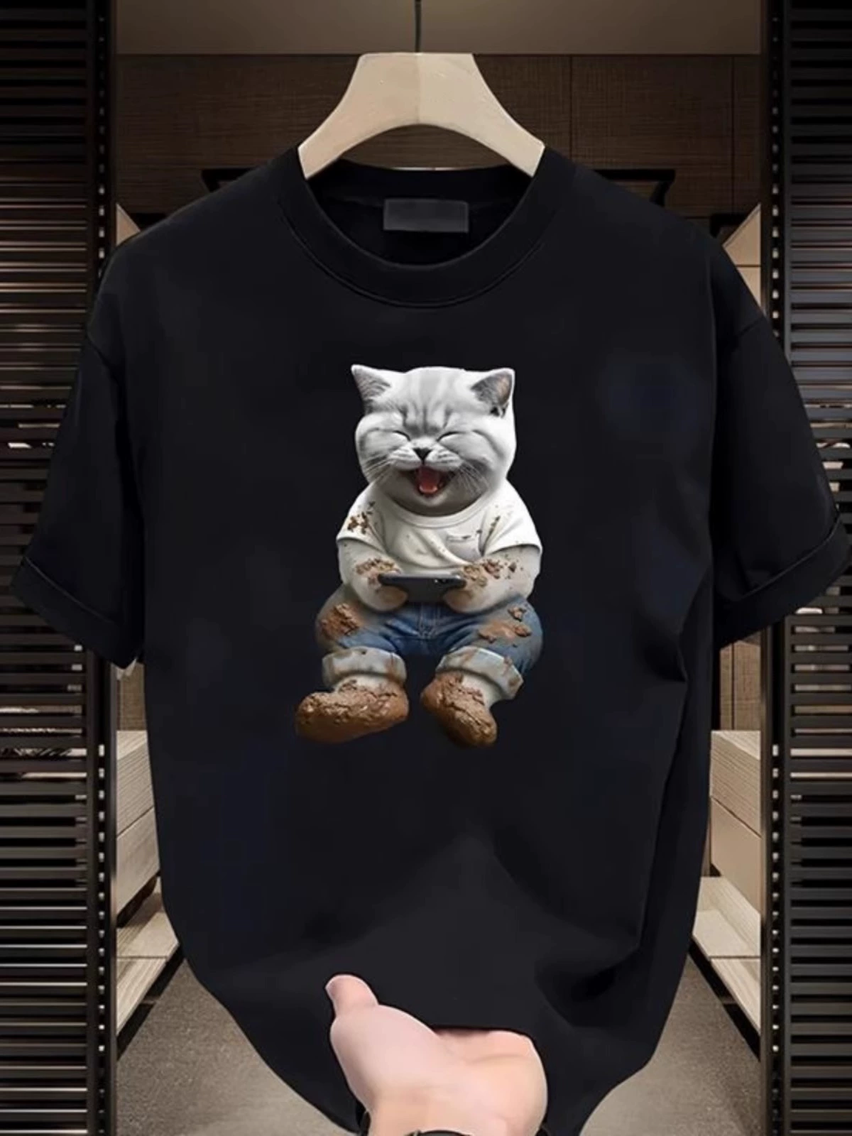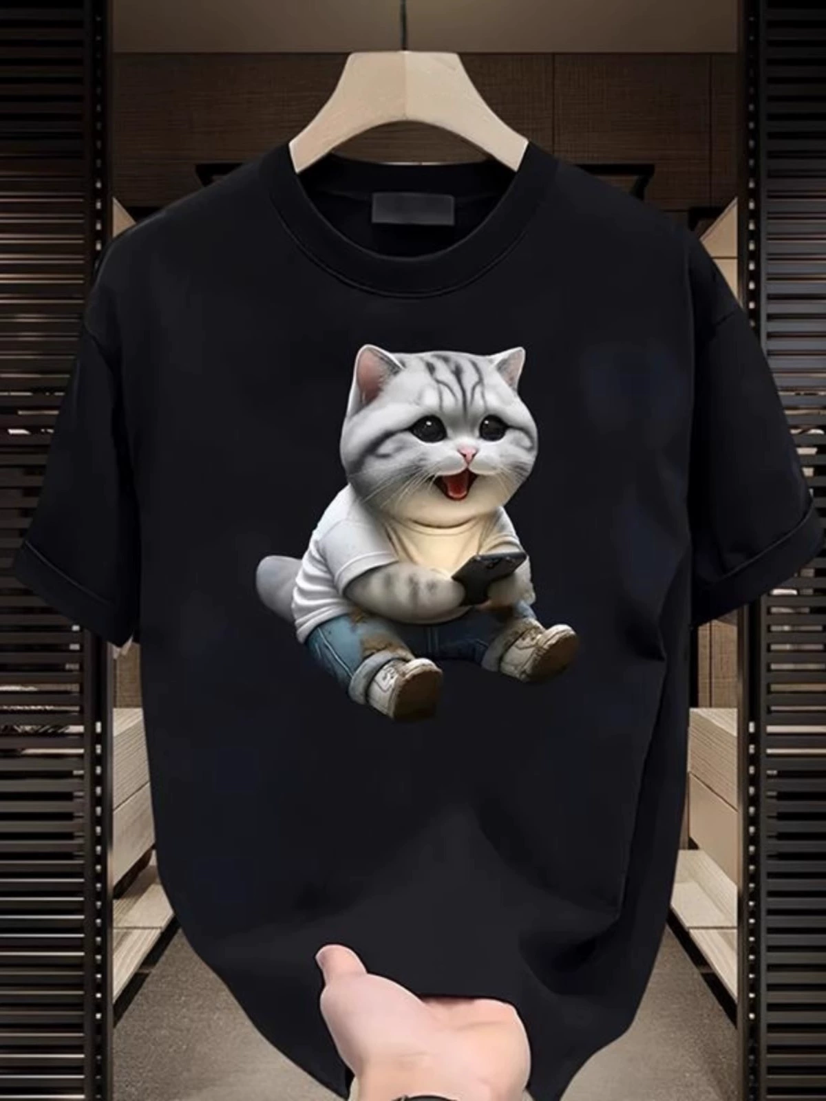 Trendy brand fun cat printed couple short-sleeved T-shirt