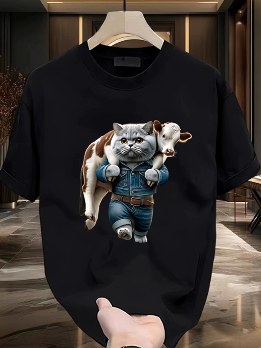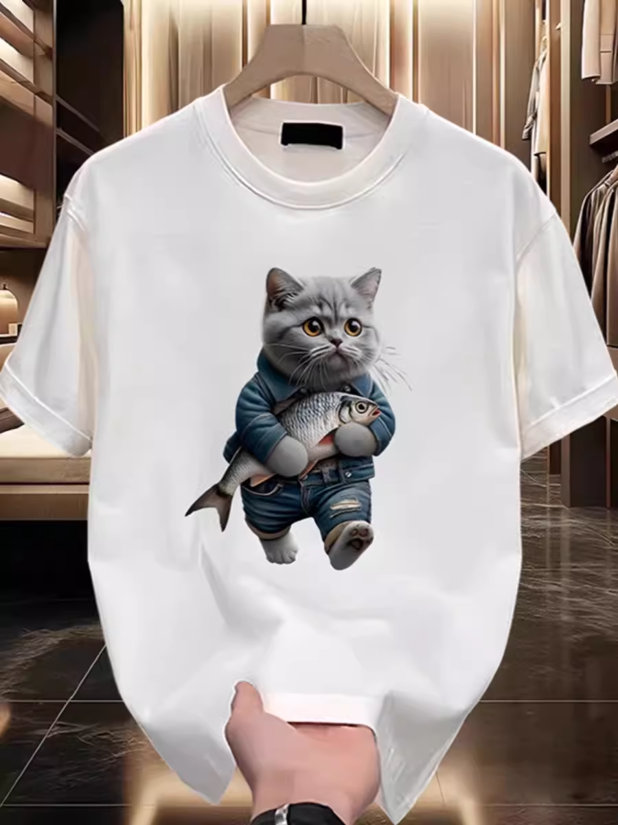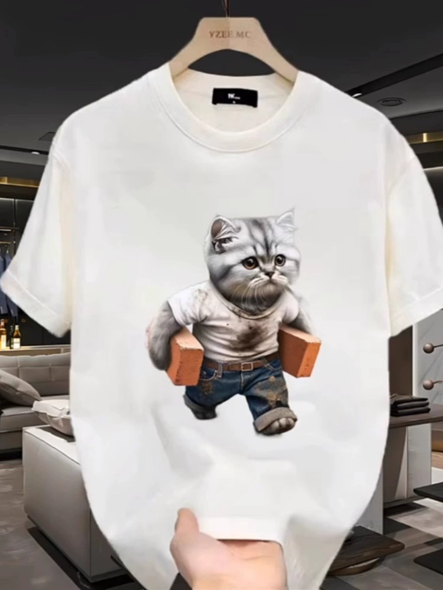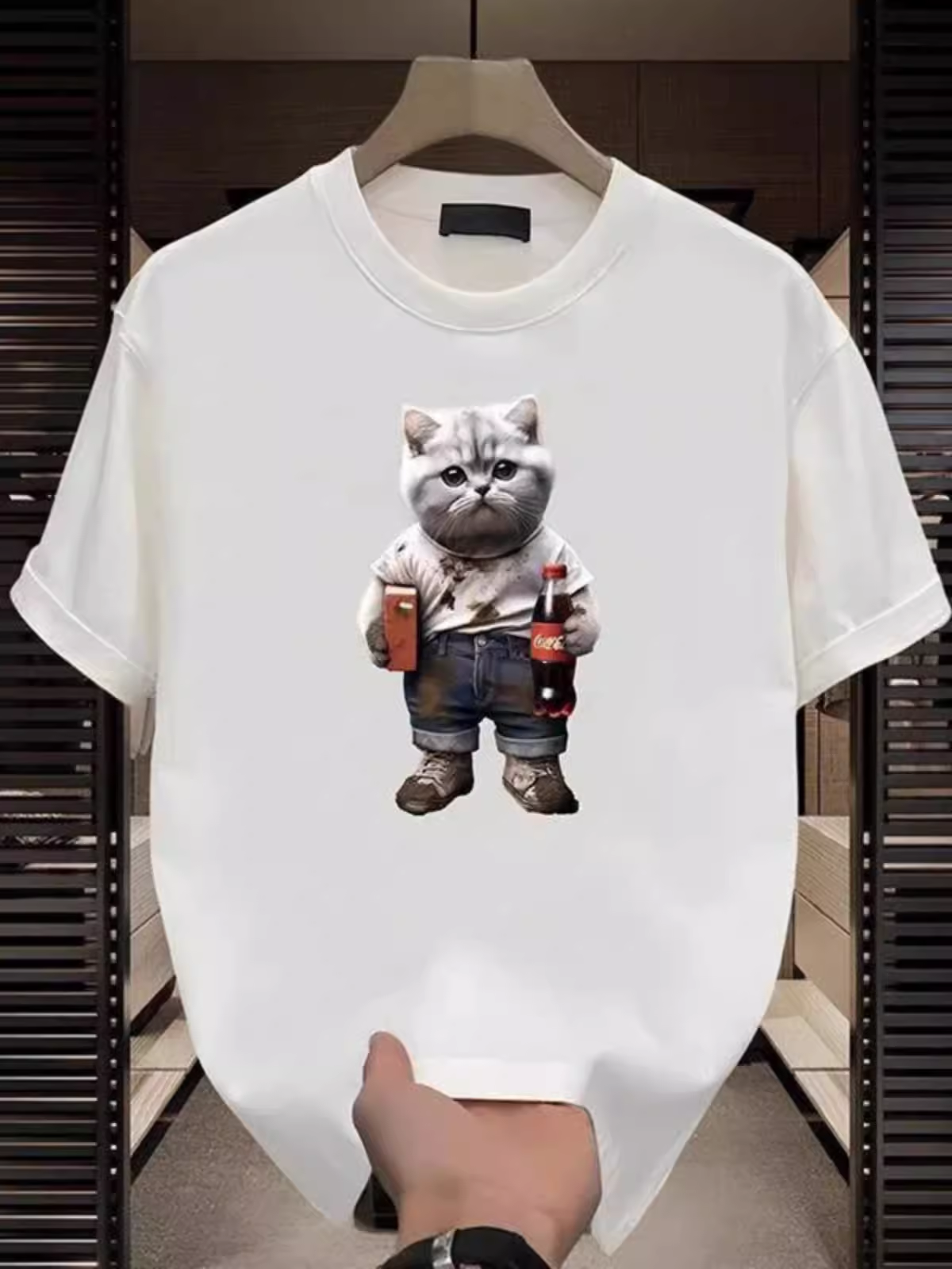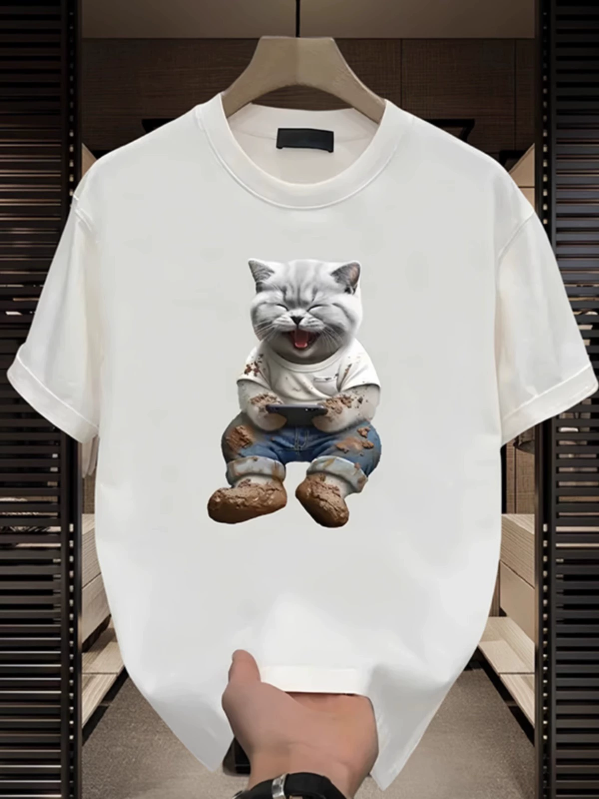 Trendy brand fun cat printed couple short-sleeved T-shirt