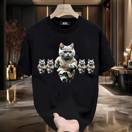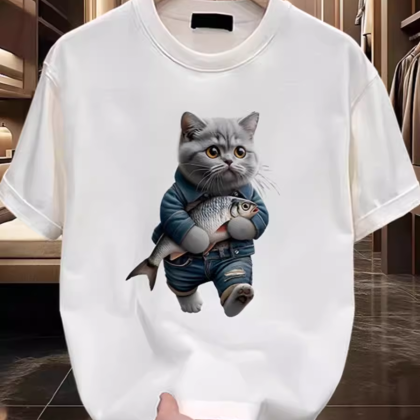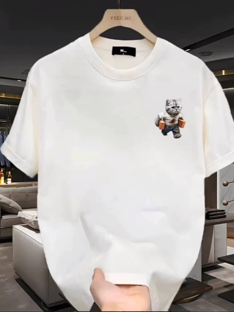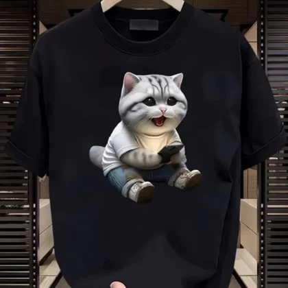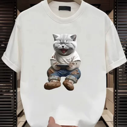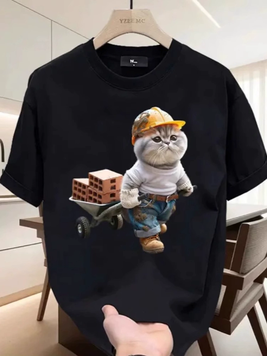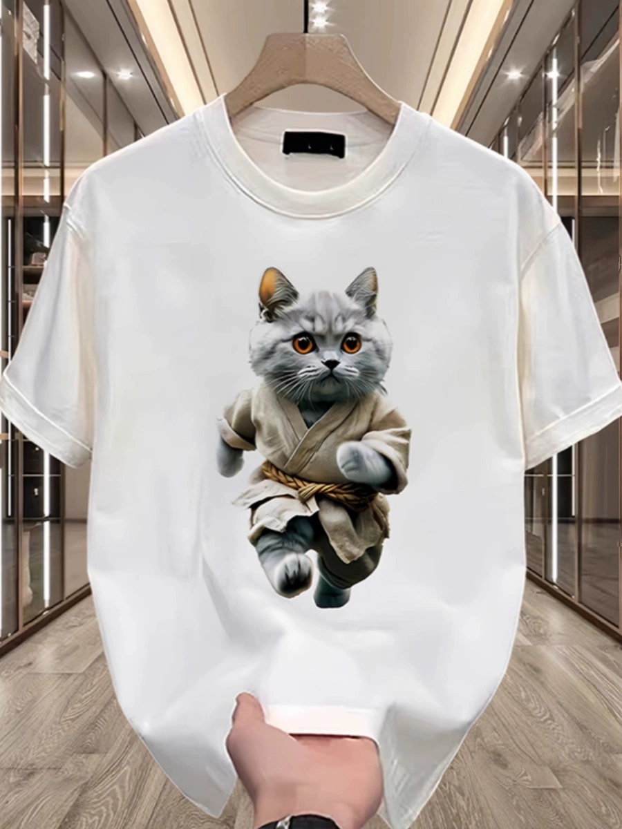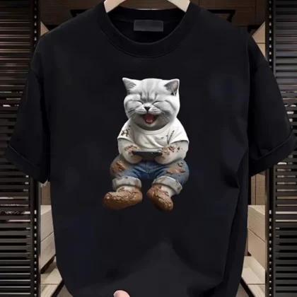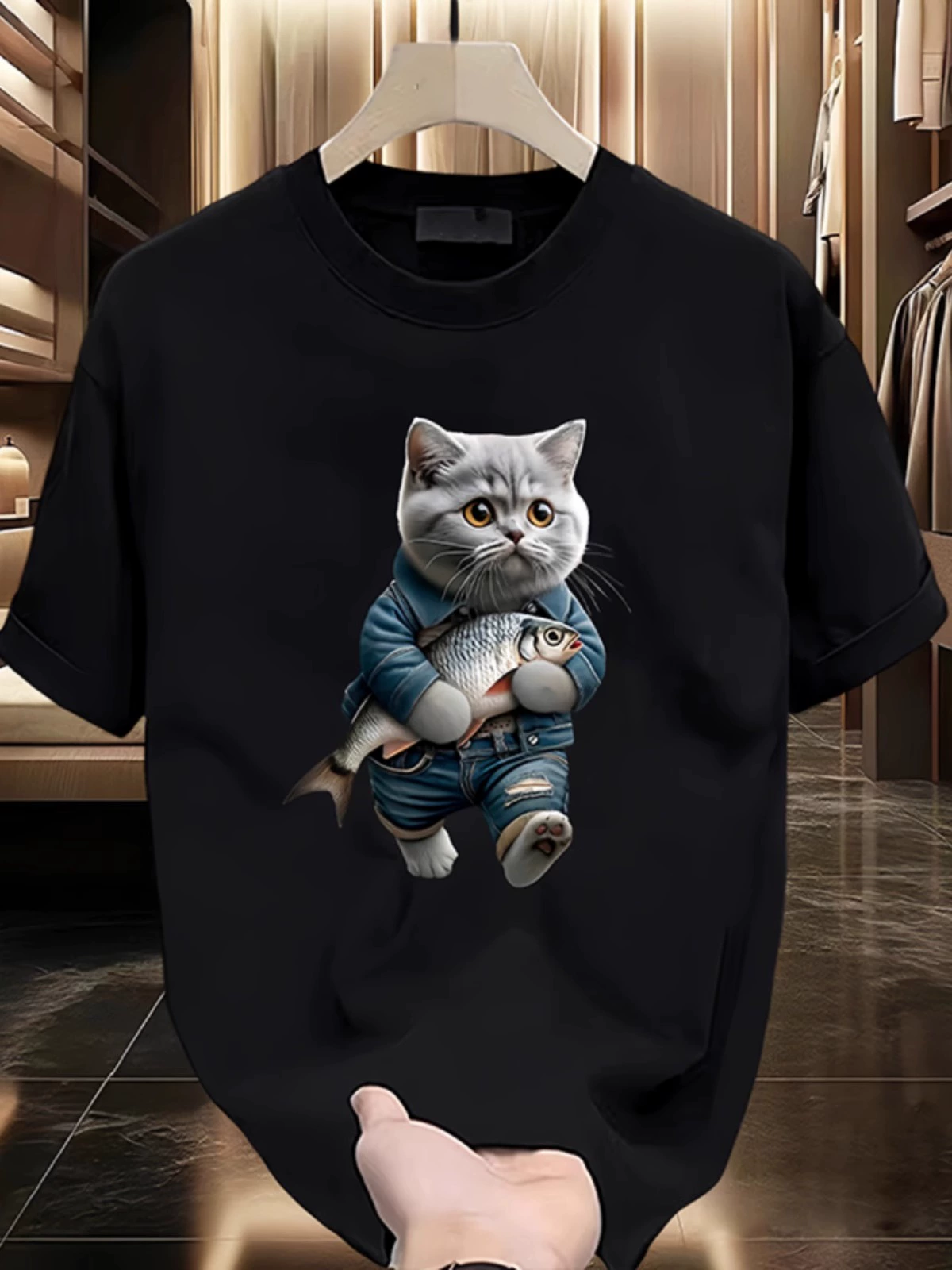 Trendy brand fun cat printed couple short-sleeved T-shirt