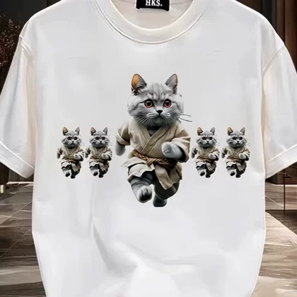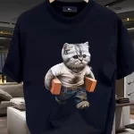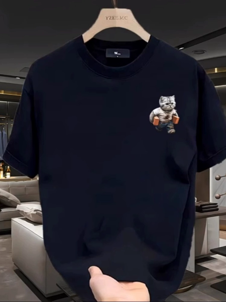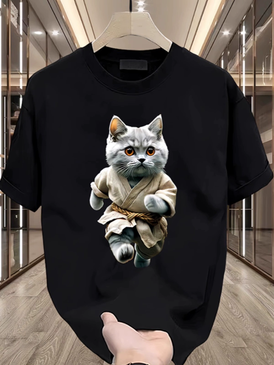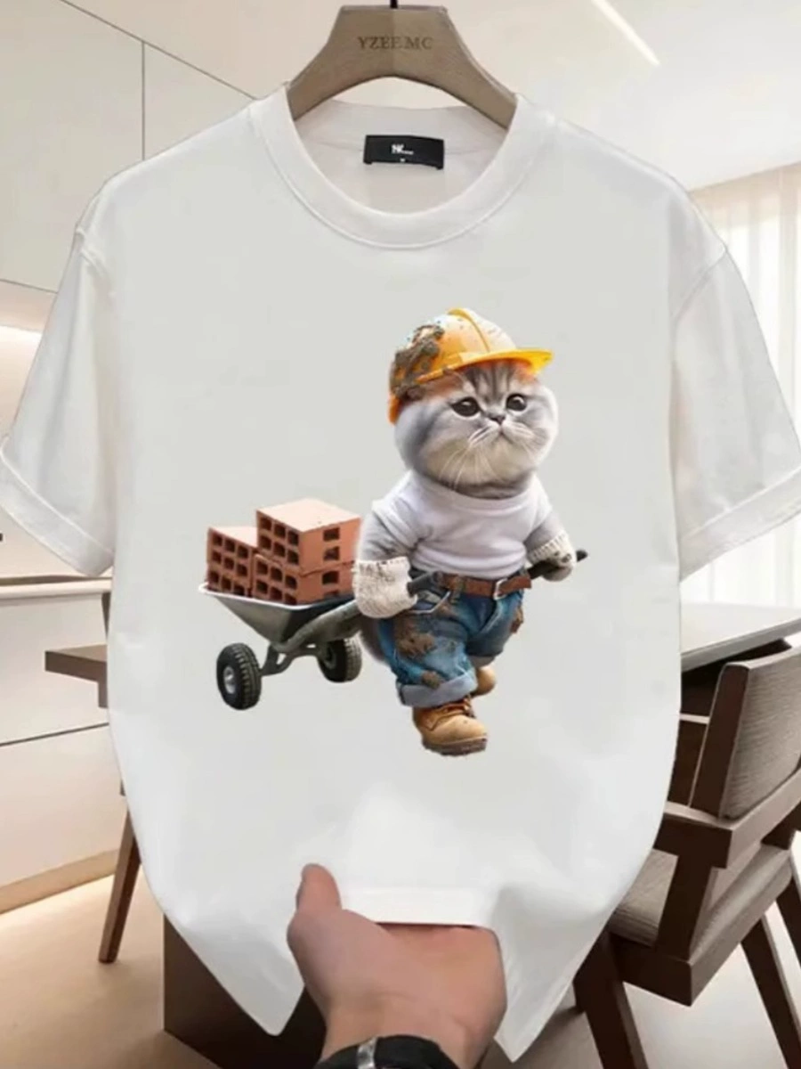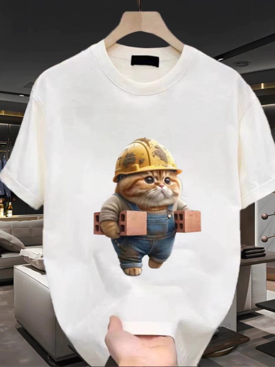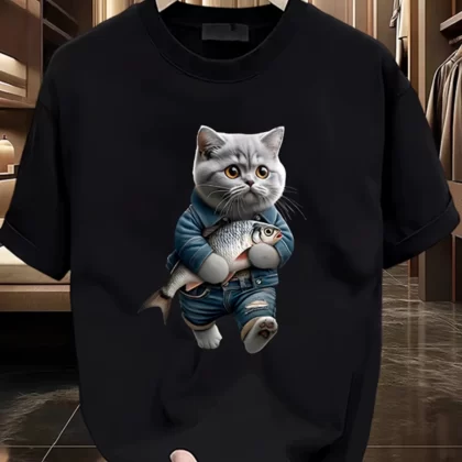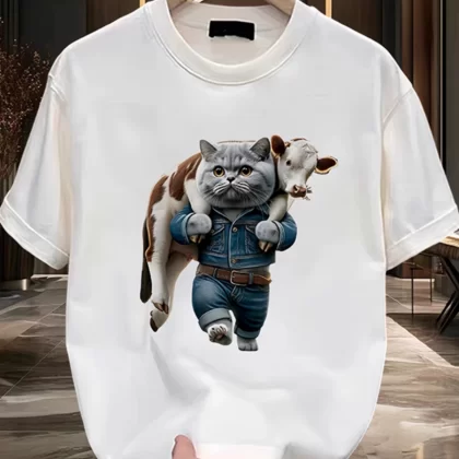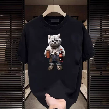 Trendy brand fun cat printed couple short-sleeved T-shirt