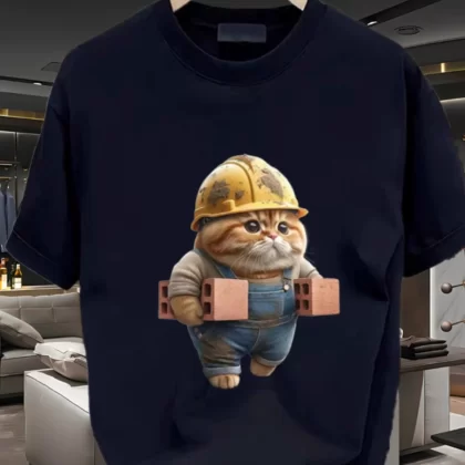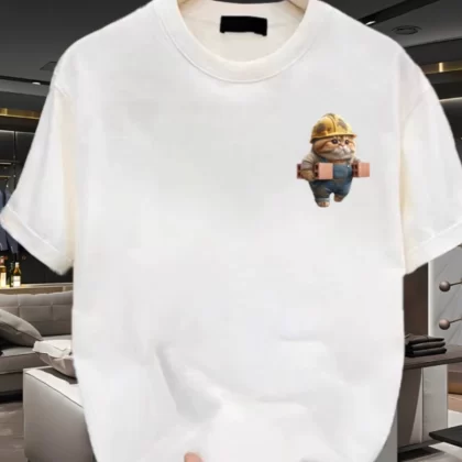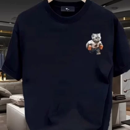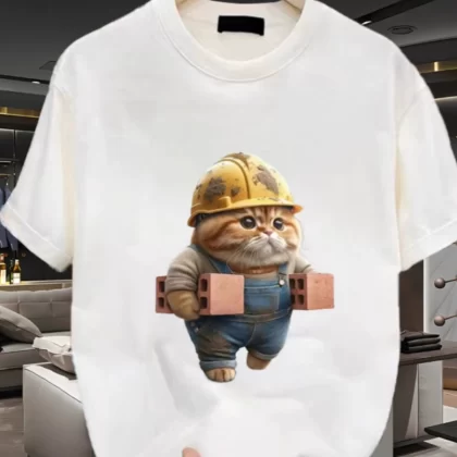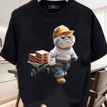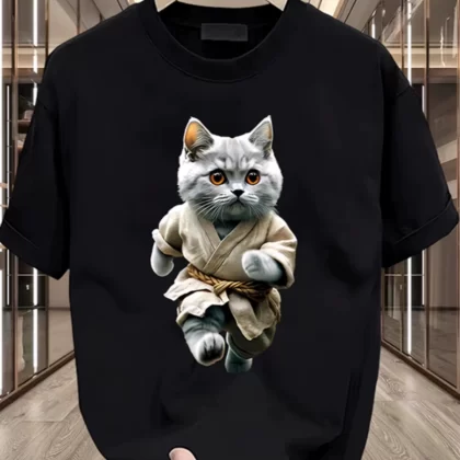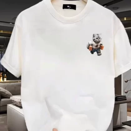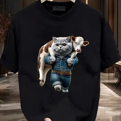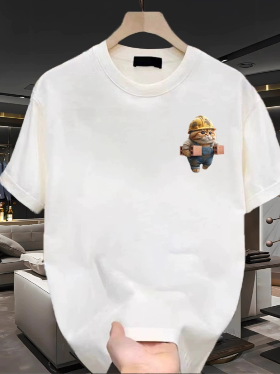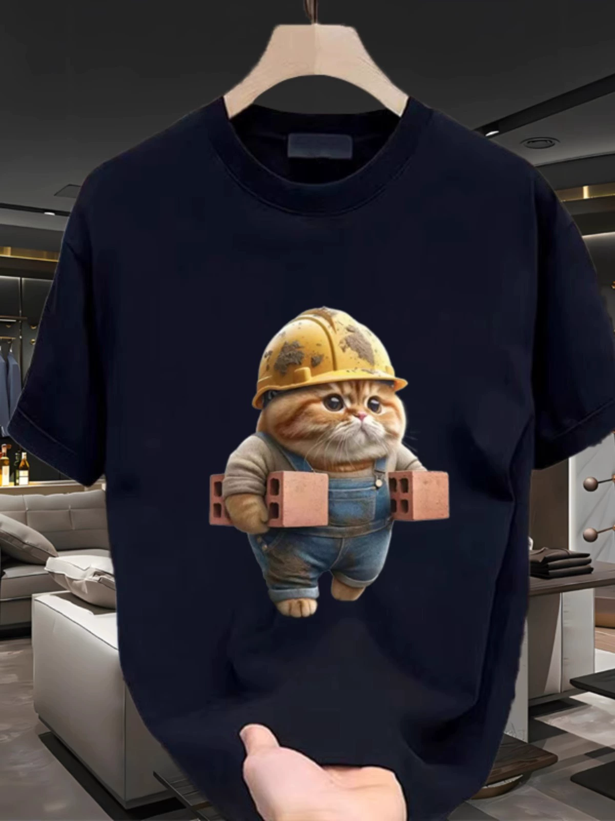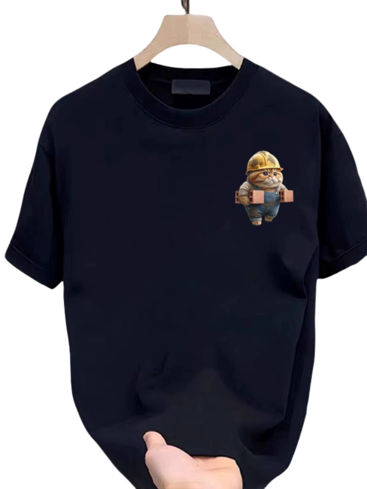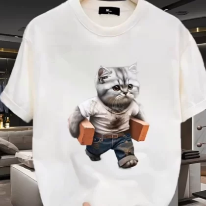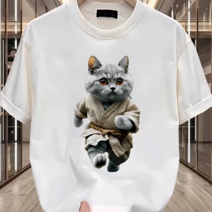 Trendy brand fun cat printed couple short-sleeved T-shirt