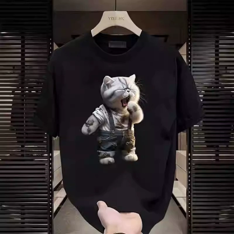 | nameOriginal | Trendy brand ins cat print handsome top short sleeve t-shirt |