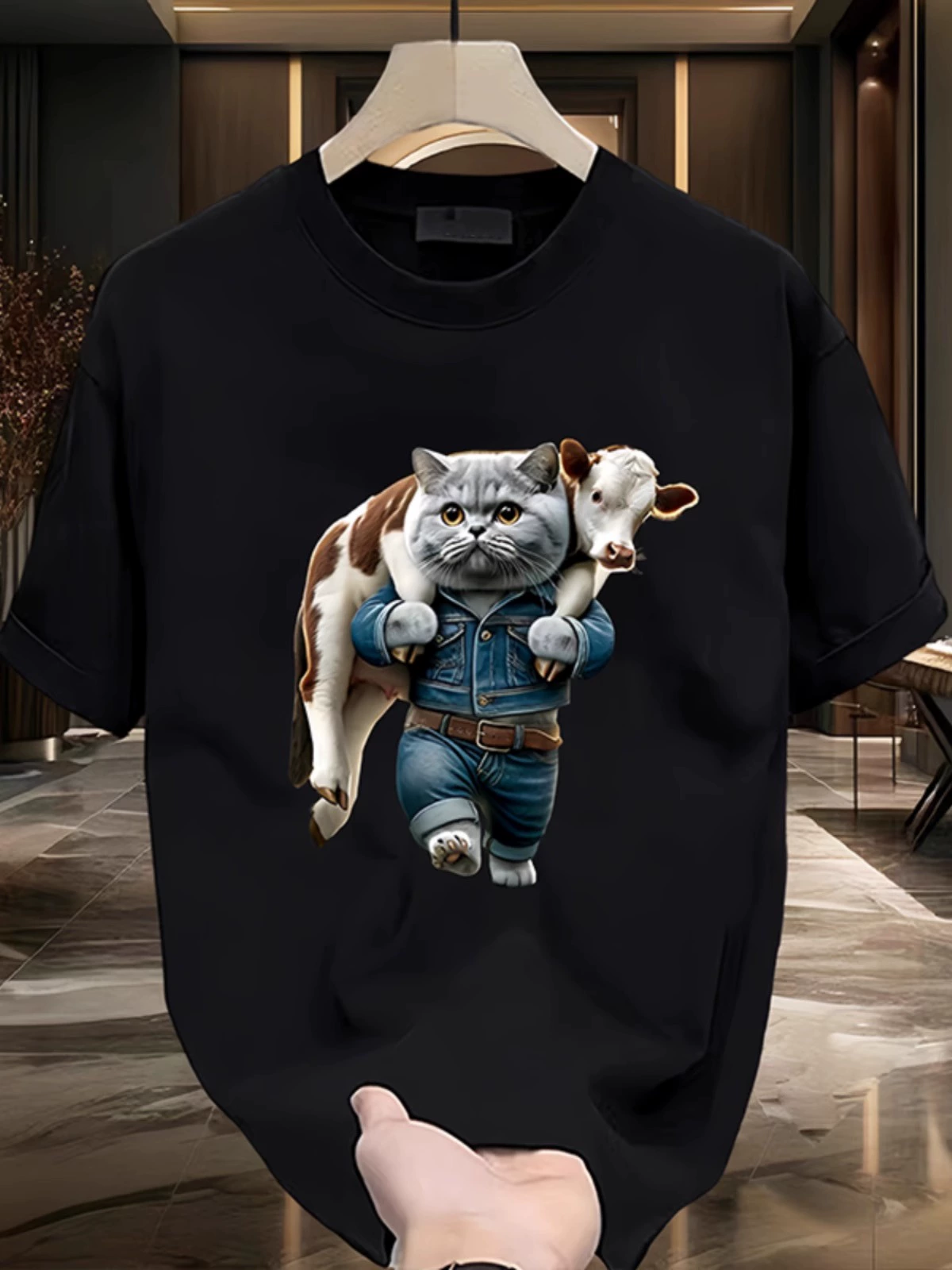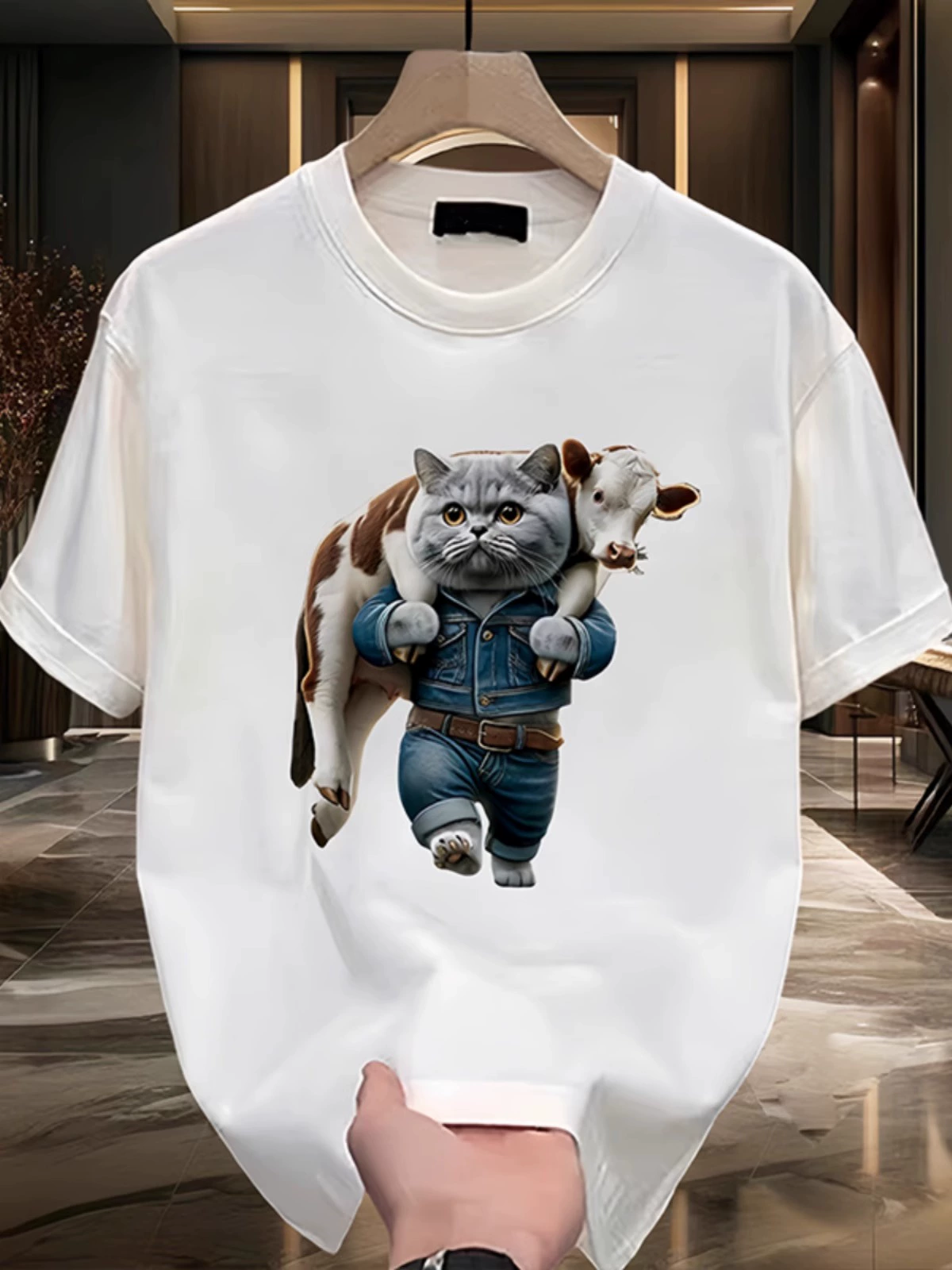 | nameOriginal | Trendy brand ins short-sleeved T-shirt men's summer new cat design print casual heavyweight cotton round neck top trendy |