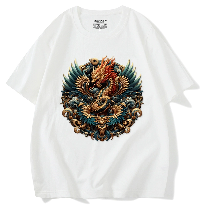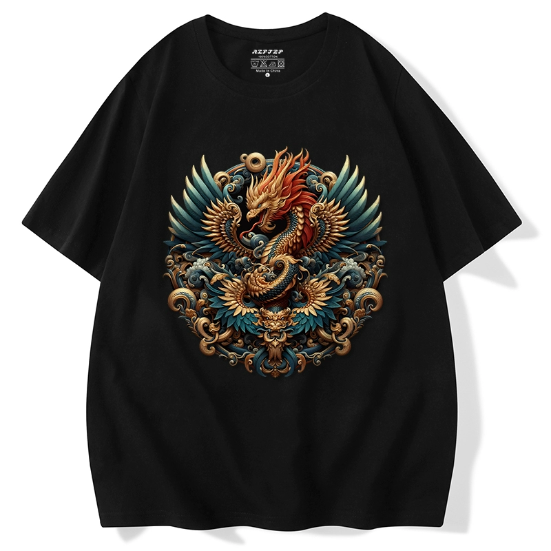 Trendy brand large size short sleeve dark style Chinese dragon with picture