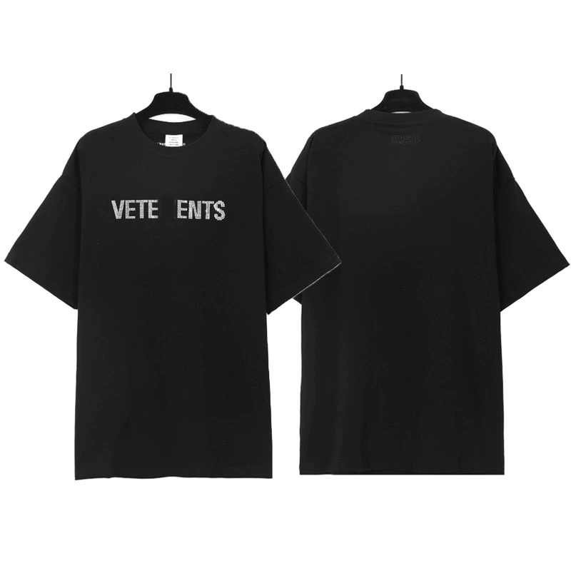 Trendy brand letter printed loose distressed short sleeves with hot rhinestones