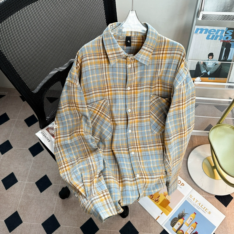 | nameOriginal | Trendy brand long-sleeved Hong Kong style retro casual plaid shirt |