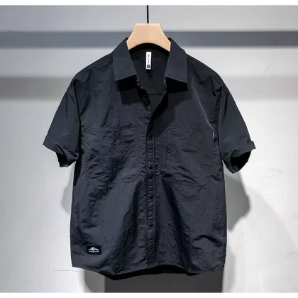 Trendy brand plus size 300 pounds Hong Kong style retro shirt short sleeves