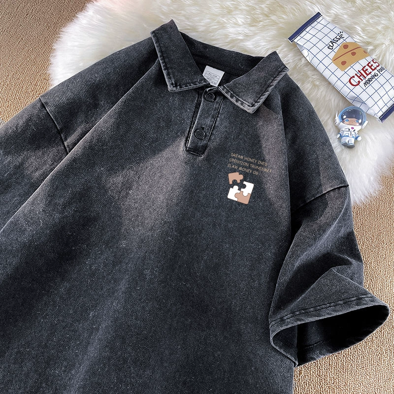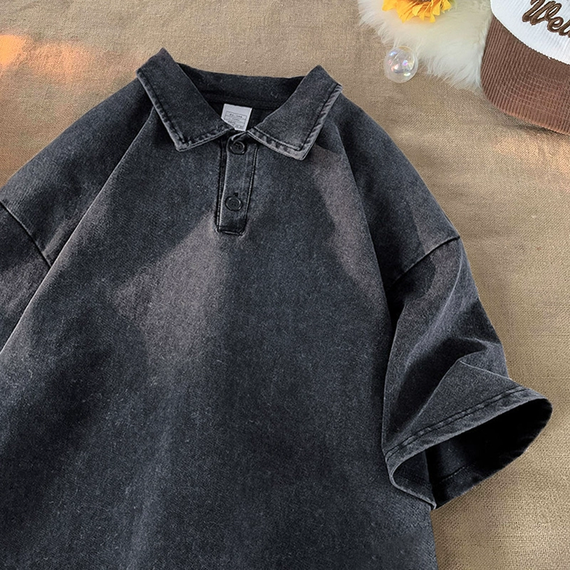 | nameOriginal | Trendy brand polo shirt, retro distressed top, short sleeves |