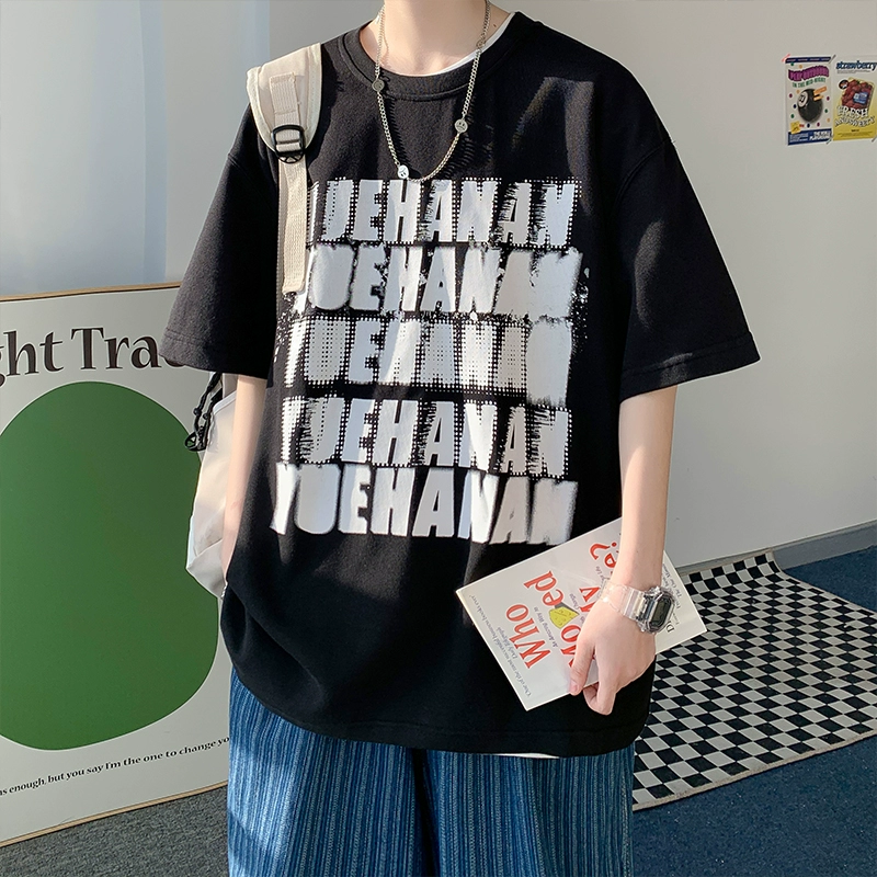 Trendy brand pure cotton men’s summer lettered American short sleeves