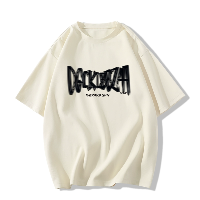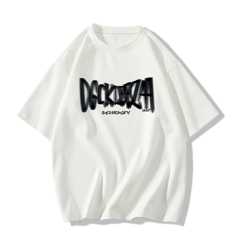 Trendy brand pure cotton right shoulder loose original slimming short sleeves