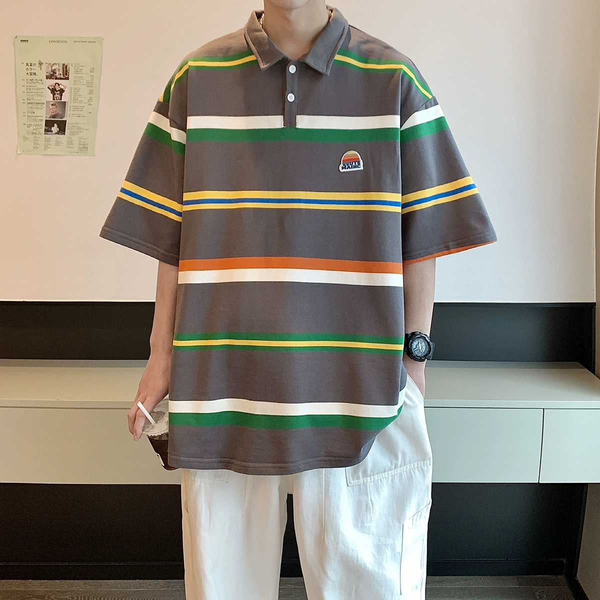 | nameOriginal | Trendy brand short-sleeved retro contrasting large size men's polo shirt |