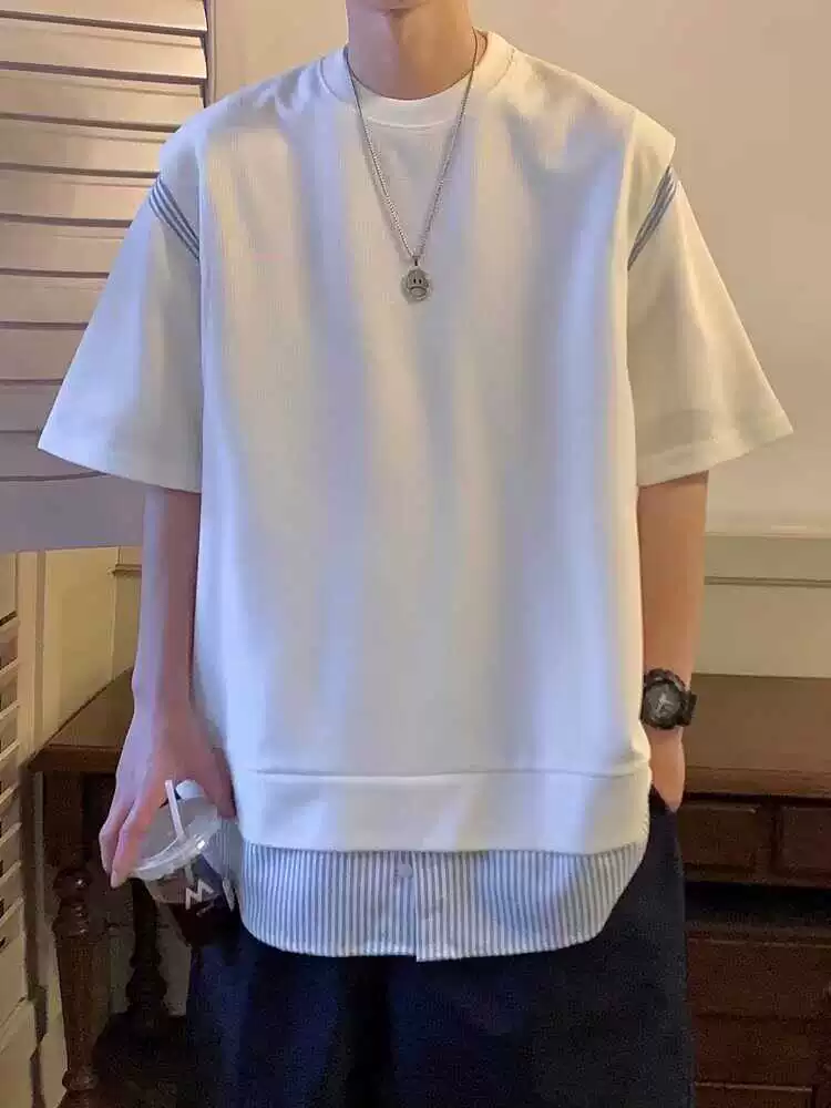| nameOriginal | Trendy brand splicing design niche three-quarter sleeves fake two pieces |