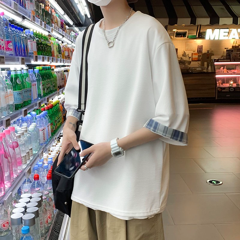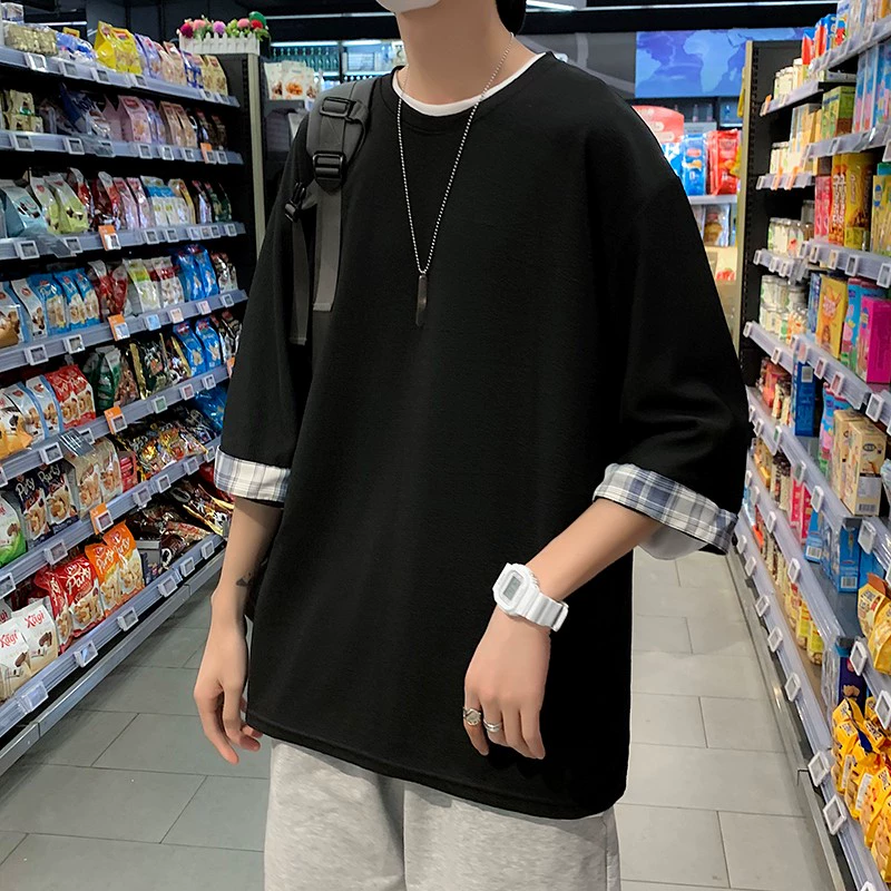 | nameOriginal | Trendy brand t-shirt ins Hong Kong style three-quarter sleeve casual fake two pieces |