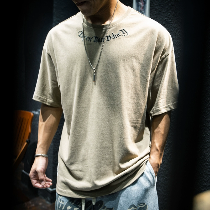 Trendy brand t-shirt ins large size half sleeve fat man American embroidery