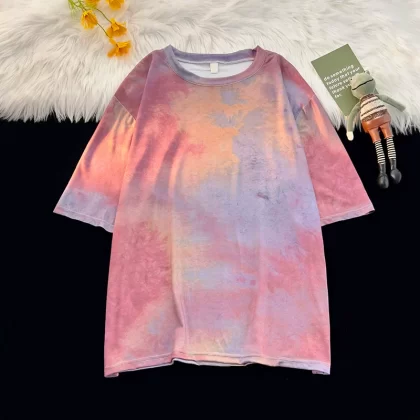 | nameOriginal | Trendy brand tie-dye gradient ins Hong Kong style Japanese short-sleeved T-shirt |