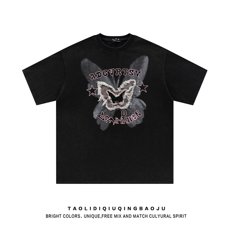 | nameOriginal | Trendy brand washed and distressed casual three-quarter sleeve tee with embroidery |