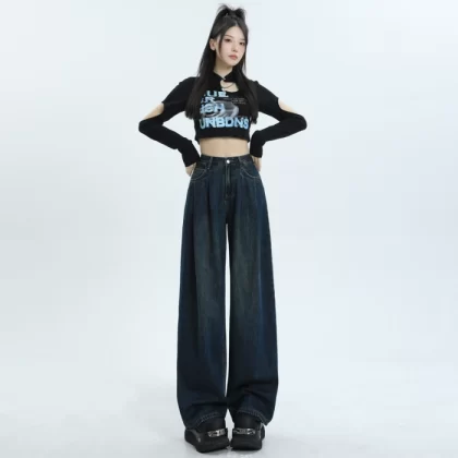 | nameOriginal | Trendy brand wide-leg spring and autumn retro high-waisted dark blue jeans |